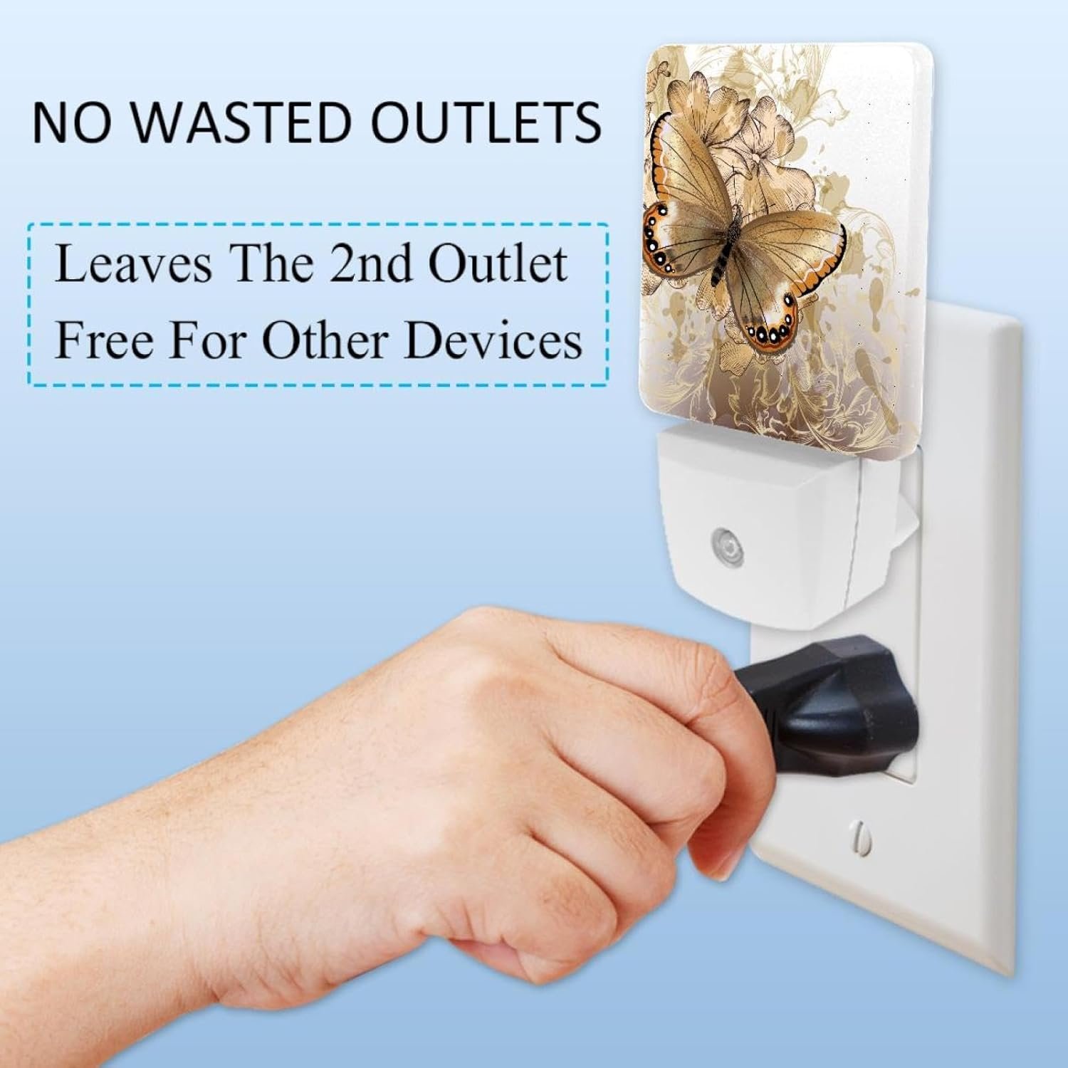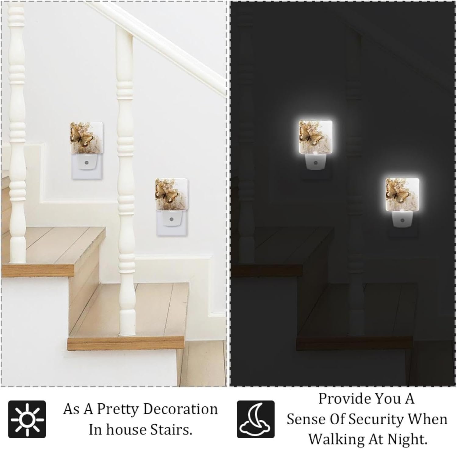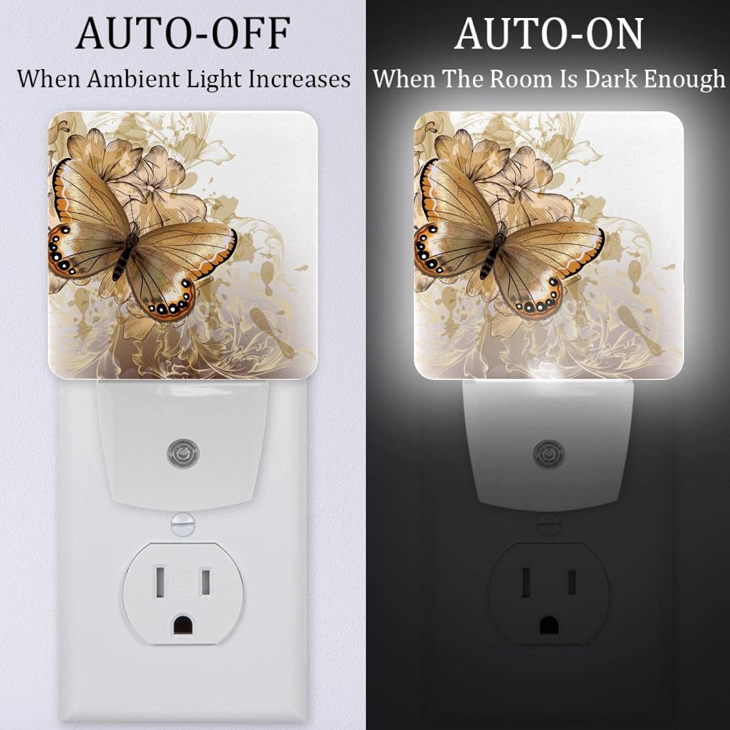 Plug-in Night Lights, Not Wasted Outlets: Leaves the 2nd outlet free for other devices, Just the right amount of light, not harsh on your eyes. Perfect for taking care of your baby at night and not having to turn on lights to wake others up, illuminate all obstacles in the room.Dusk to Dawn Sensor Night Light, not Motion Sensing: This night light automatically turns on at dusk and off at dawn. It turns off and on perfectly depending on dusk or dawn.Energy Efficient: Led night light consumes only 0.5W, saving both the environment and your wallet. They are perfect to light up a hallway or room.Applications: Indoor lighting, bedroom, study, bathroom, corridors, hotel, kids room or any other places where accent lighting is required.NOTE: This product is not a toy. For safe use, plug only into exposed wall outlets where the device is ventilated and cannot contact bed coverings or other material.