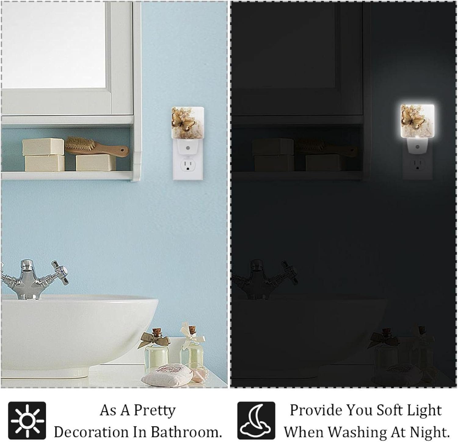 Widely Used: This plug-in night light also can be used in hallway, toilet, passageway, study room, bedroom, kitchen, living room, nursery room, corridor, etc. Give you lights in the dark. Bring a novel look to your home decor.