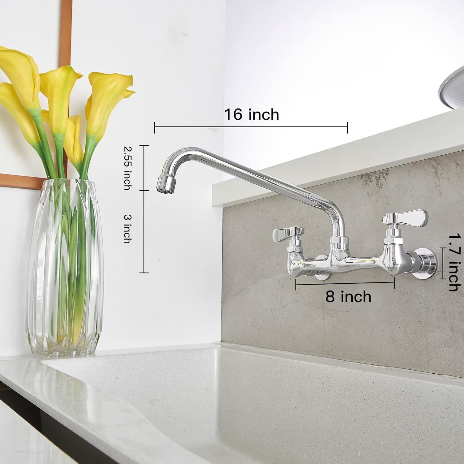Easy DIY Installation: Commercial faucet is designed to fit 2-hole, wall-mounted configurations, the package included all mounting hardware, you may install this faucet less than 15 minutes following the manual. Laundry & utility room sink faucets