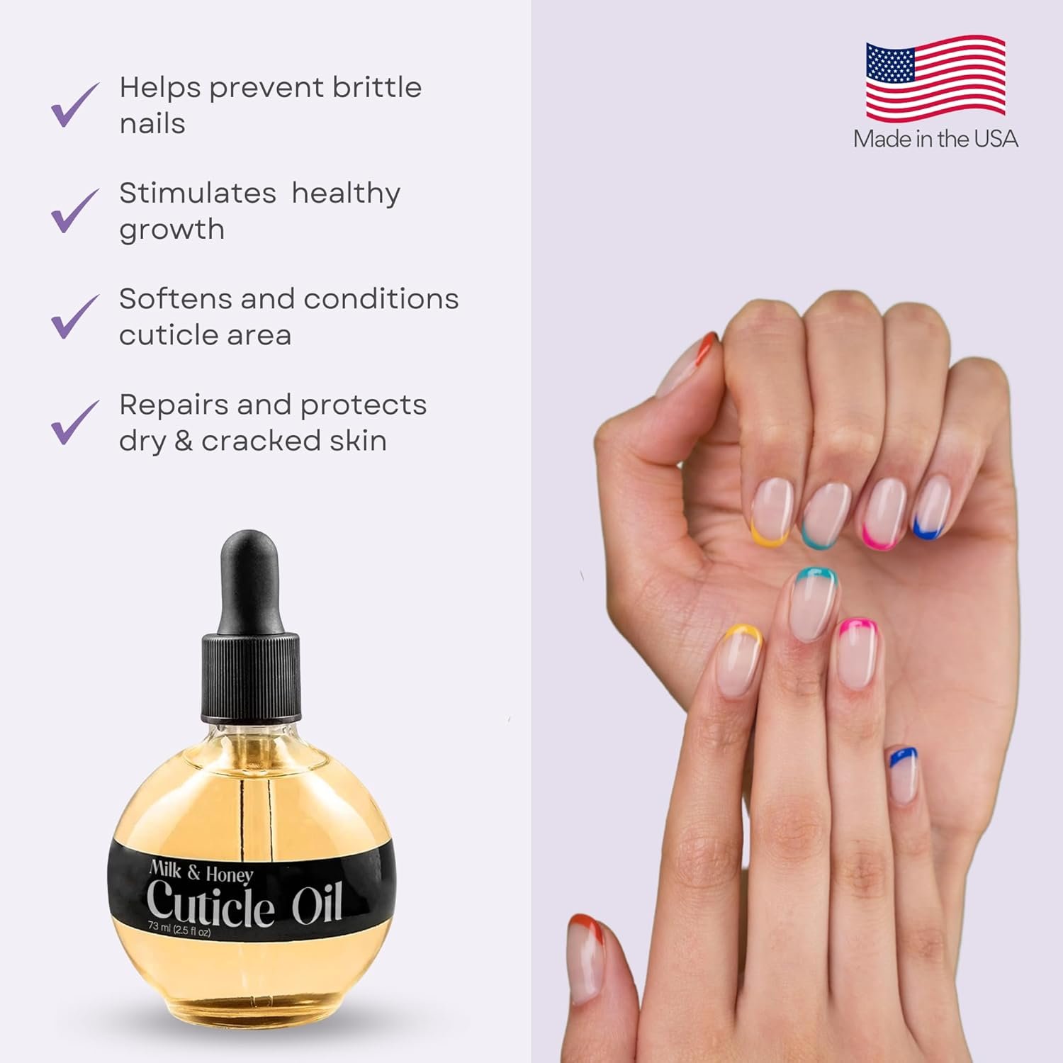 C CARE Cuticle Oil For Nails – Milk and Honey Nail Oil – Repairs Moisturizes and Strengthens Nails and Cuticles Overnight – Dropper & Brush included – Large 2.5 oz bottle