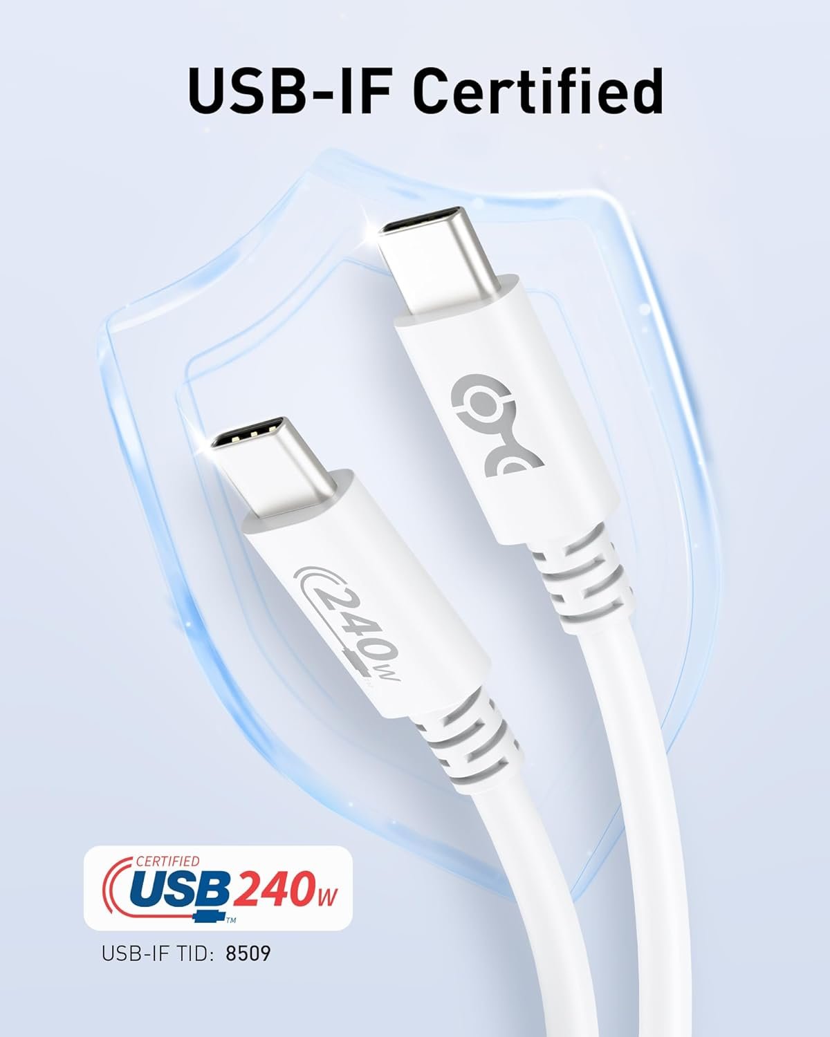 USB-IF Certified Charging Cable: Support USB PD 3.1 Extended Power Range (EPR) including 28V/140W, 36V/180W and 48V/240W; Power & charge your laptop, tablet or phone up to 240 watts with this USB-IF certified USB4 Charging cable and a USB Type C charger; USB C charge cable is an ideal replacement or spare USB C Charge cable for computers such as MacBook Pro, MacBook Air, Dell XPS, Microsoft Surface Pro