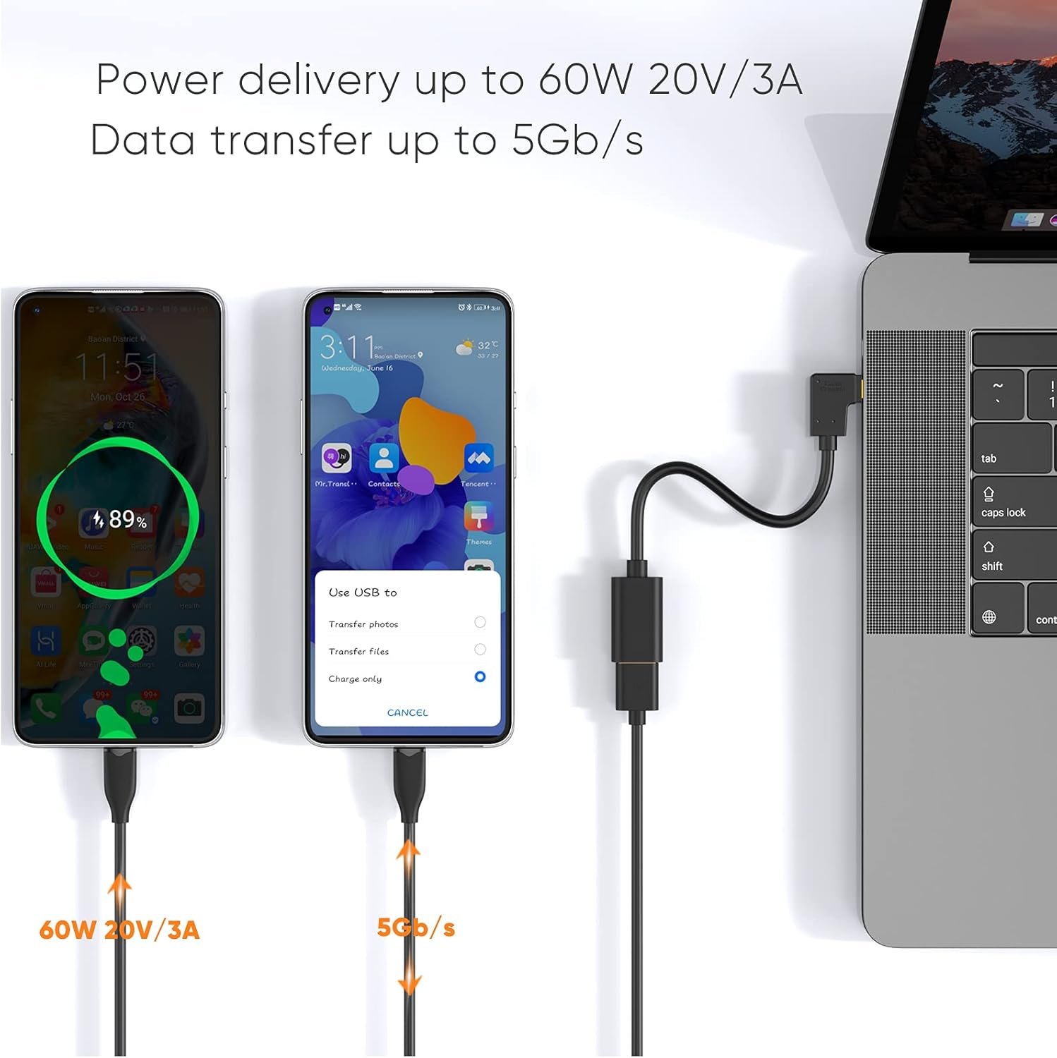 5G super speed: This USB 3.1 Gen1 type C adapter has been developed for high-speed data transfer at up to 5 Gbps and can synchronise photos, videos and music in seconds