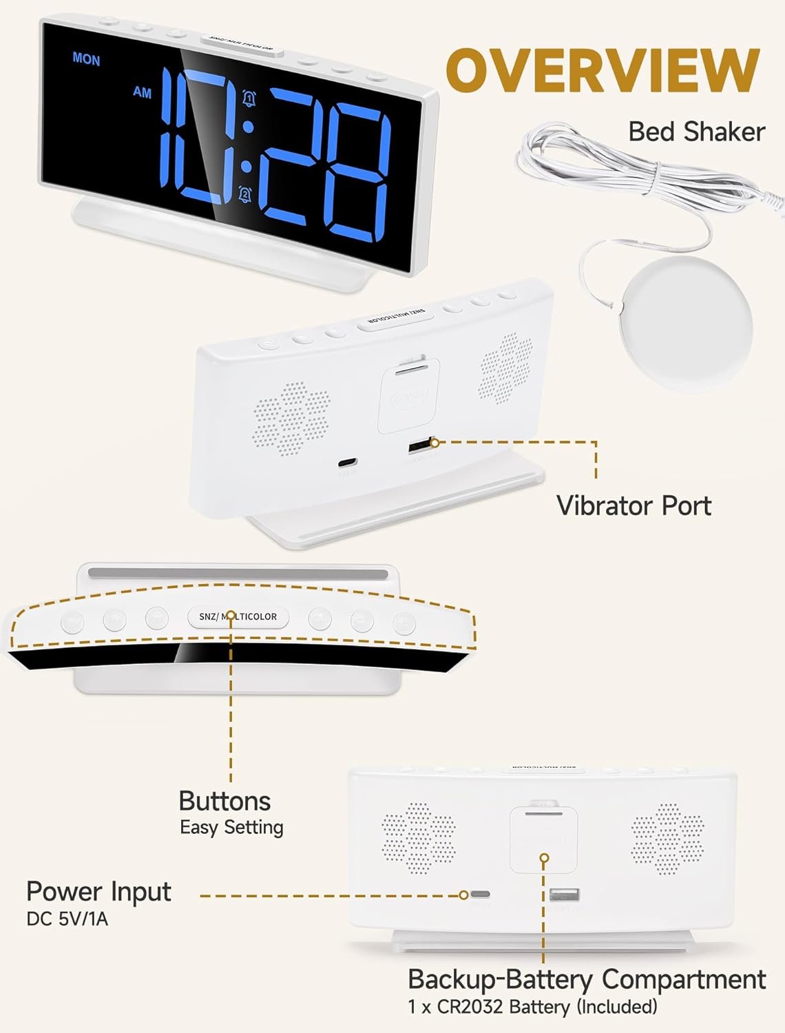 Easy to Operate: The alarm clock is designed for easy use with intuitive setting buttons, making it suitable for people of all ages, including kids and elders. It features updated functions such as vibration, dual alarm, dimmer, USB charging port, and a modern design, making it a perfect choice for your family, friends, and kids