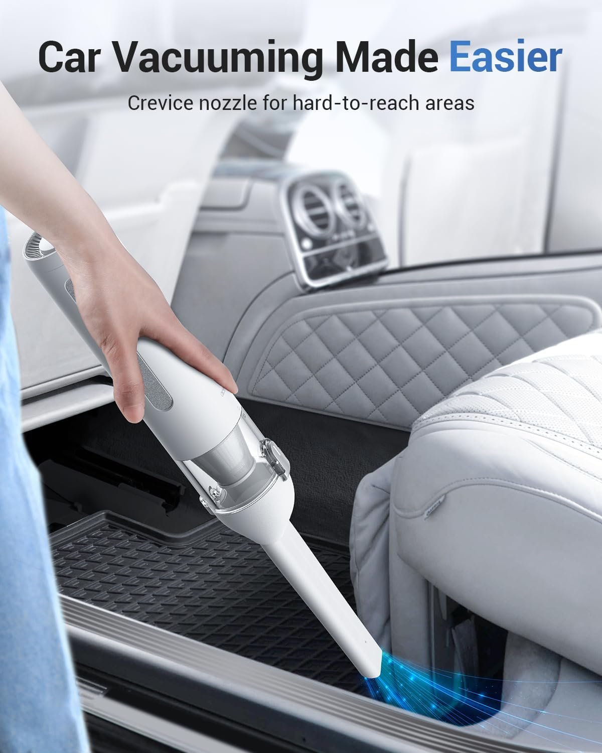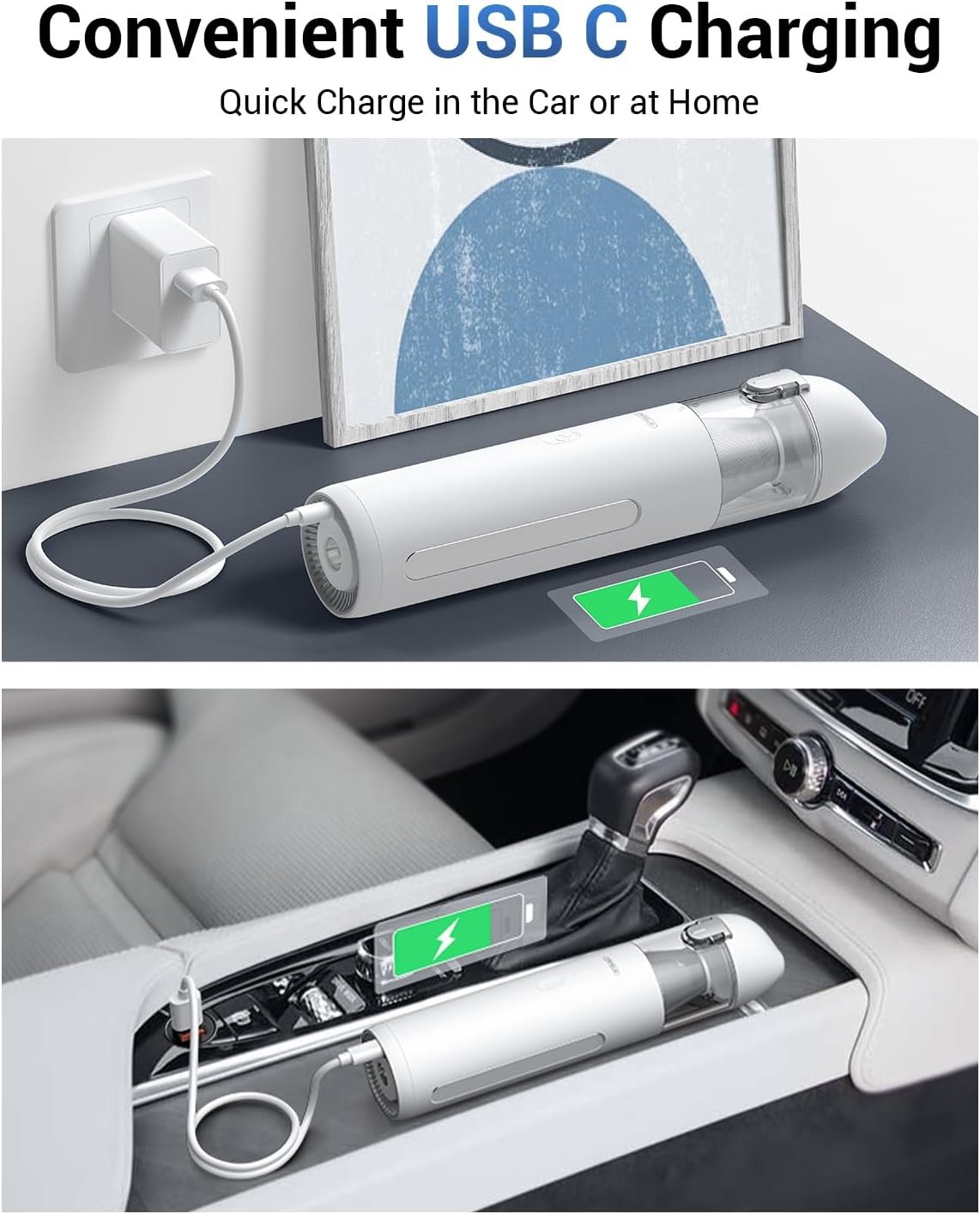 Fed up with struggling with tangled cords and bulky vacuums just to reach those tight corners and high shelves? Imagine a mini cordless vacuum that’s so nimble it can dive into your car’s nooks and crannies to make it look showroom-clean. Ready for this helpful cleaning companion? Say goodbye to the hassle of lugging around heavy vacuums and embrace a compact, lightweight, and versatile cleaning solution designed to meet your everyday cleaning needs and more. Enjoy a cleaner home and car interior with this portable mini car vacuum at your side.