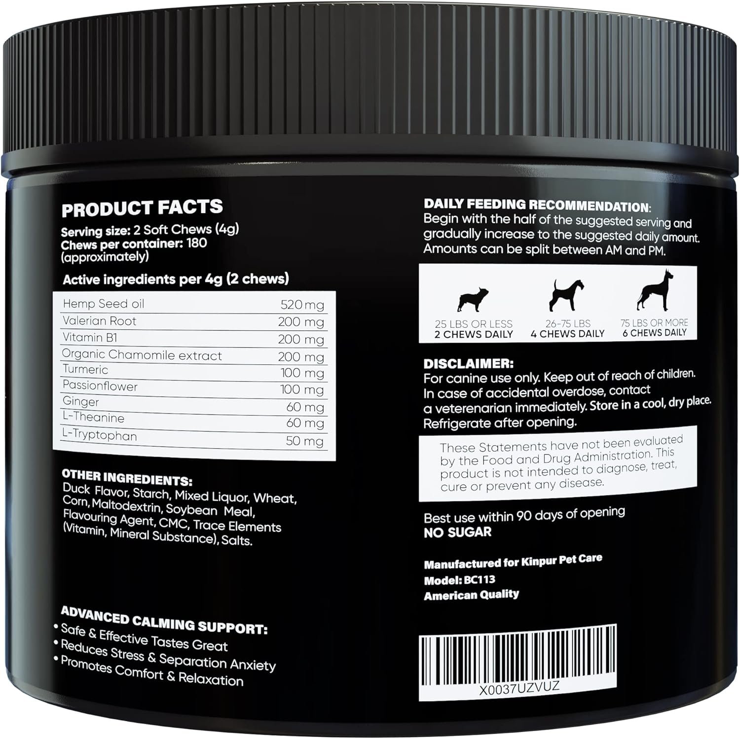 SAFE & RELIABLE We value quality and customer satisfaction. Ever since 1928, Kinpur Pet Care has delivered effective, high-quality, and natural ingredients. Your calming chews are safe for all breeds, sizes, and ages.