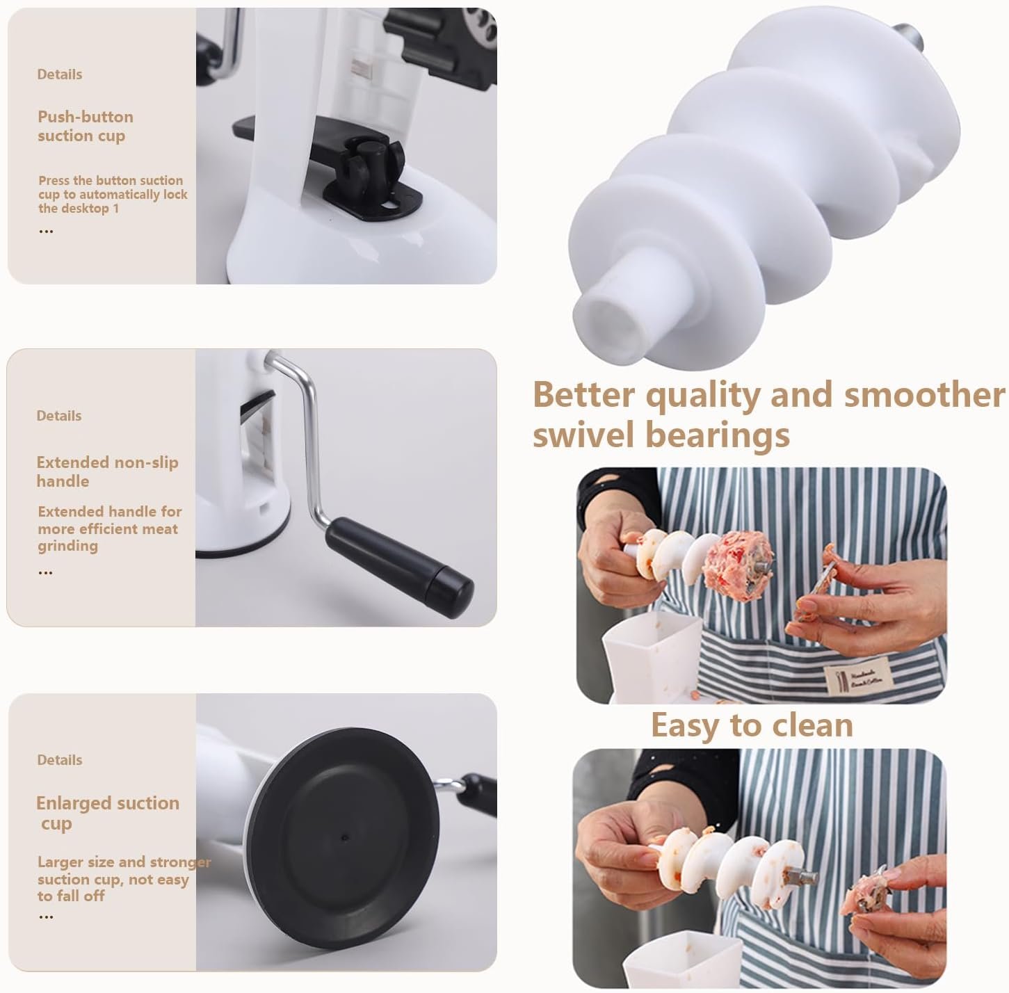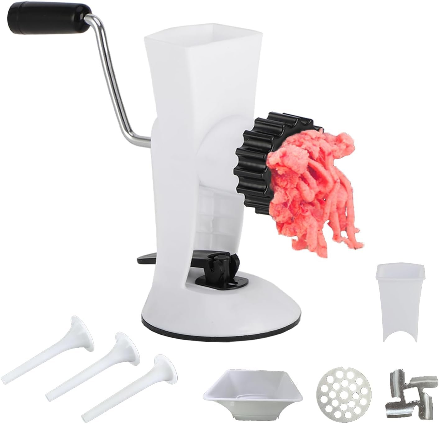 Multi-Function& Efficien:Multifunctional manual meat grinder allows for easy vegetables and meat grinding to make meatballs, sausages, make homemade burger patties and more, is a good helper in your kitchen.With a variety of attachments,with 3 different types of sausage stuffer.