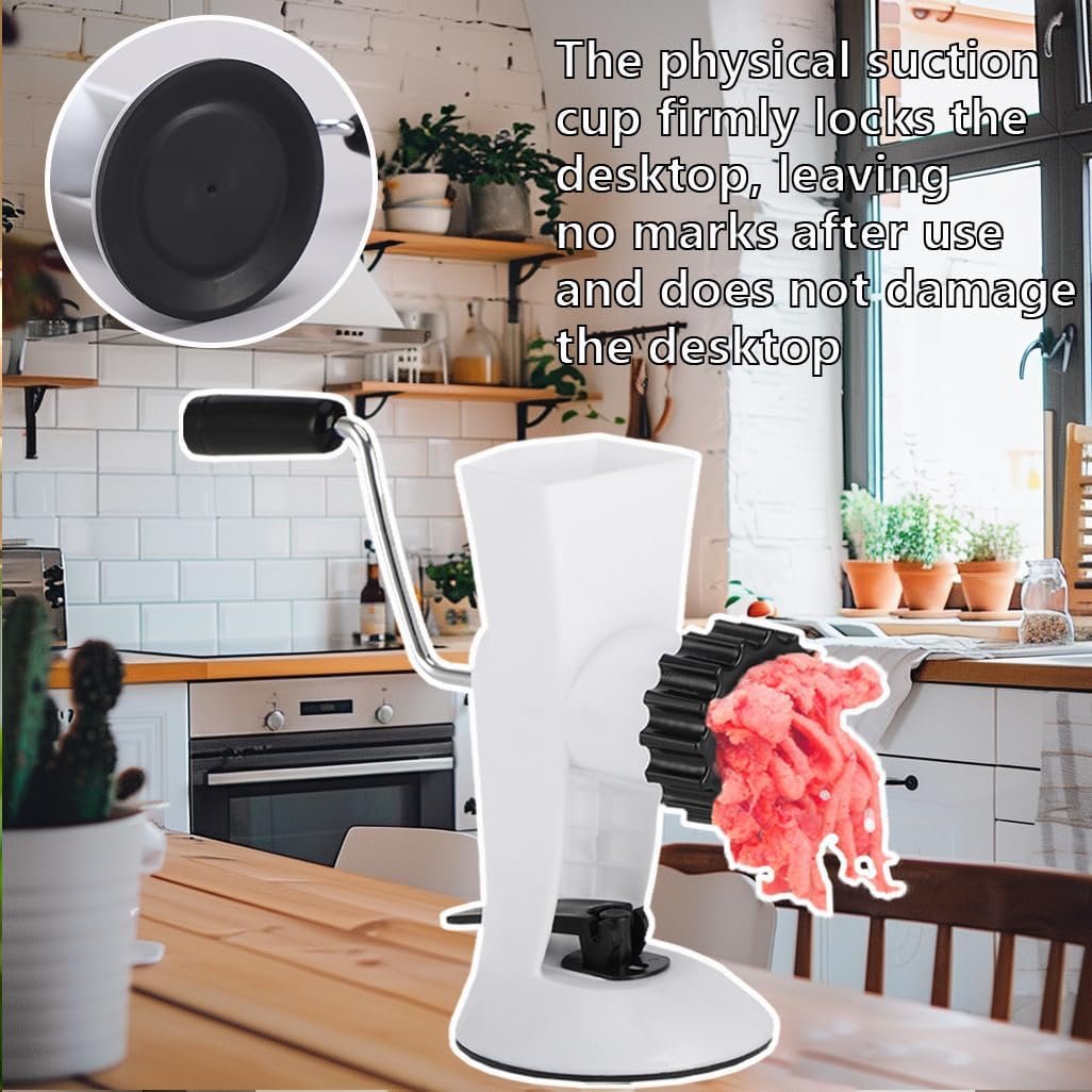 Excellent Design:Increased square feed inlets,rotate the spiral pushing axis of repeated cutting to avoid slipping, and improving efficiency.Non -slip and long handle.Upgraded vacuum chassis,anti -slip and shock -proof.The blade of meat grinder attachment is completely closed, you don’t need to touch the blades during mincing process,absolute security and peace of mind.