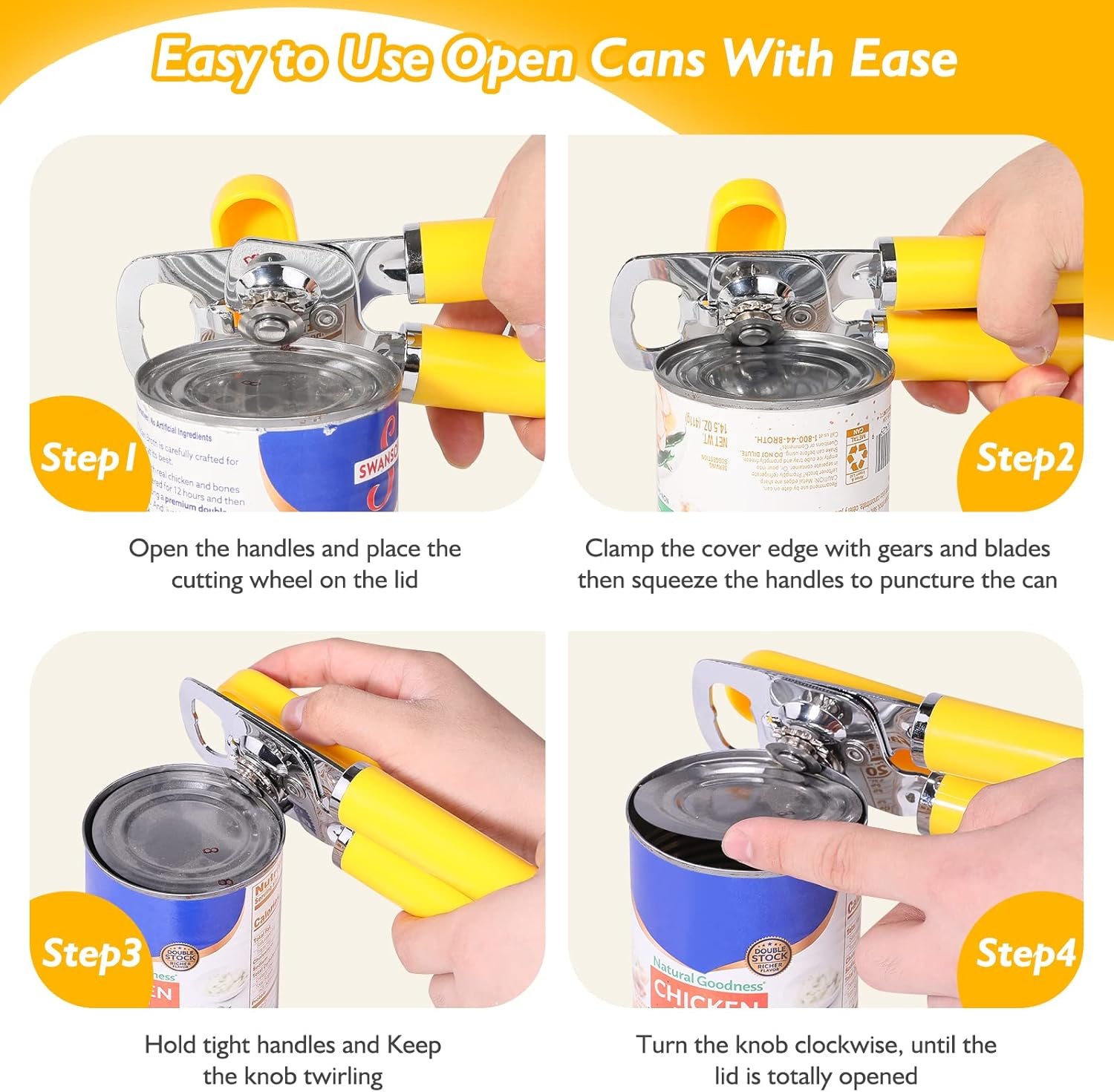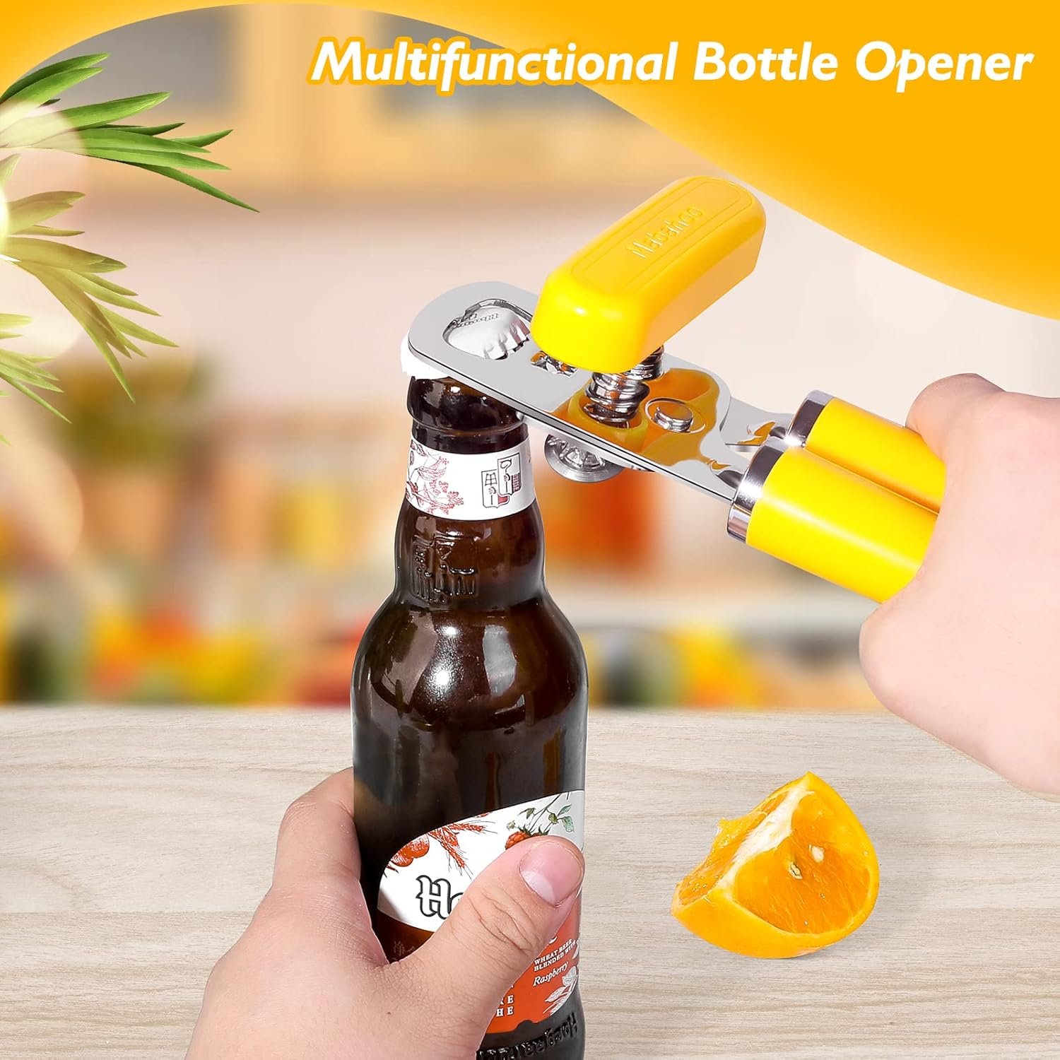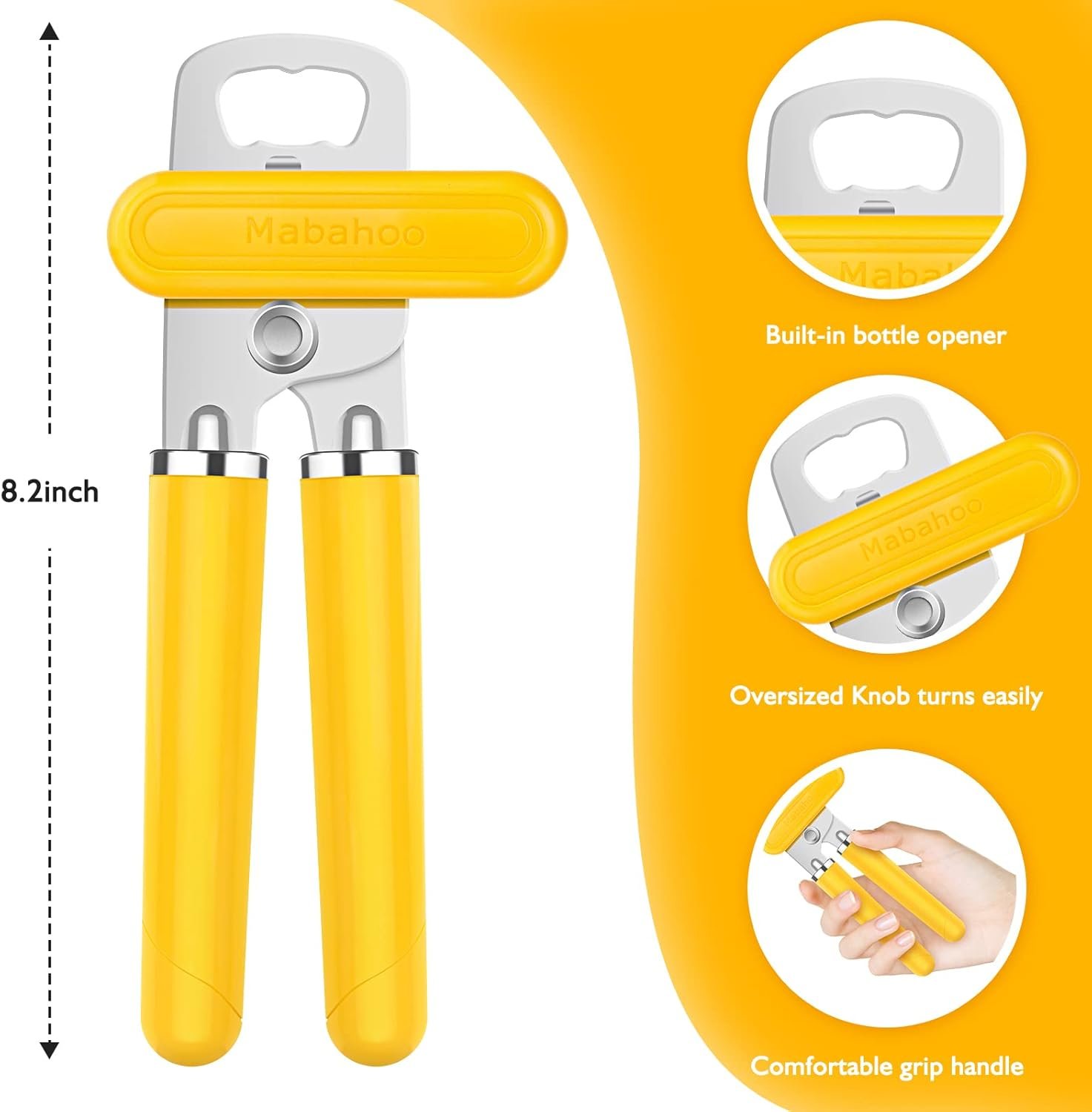 Can Opener, Mabahoo Can Opener Manual Heavy Duty Hand Held Can Openers, Top Stainless Steel Smooth Edge, Easy Turn Knob, with Bottle Opener, Kitchen Gadgets Must Haves Accessories Utensils, Yellow