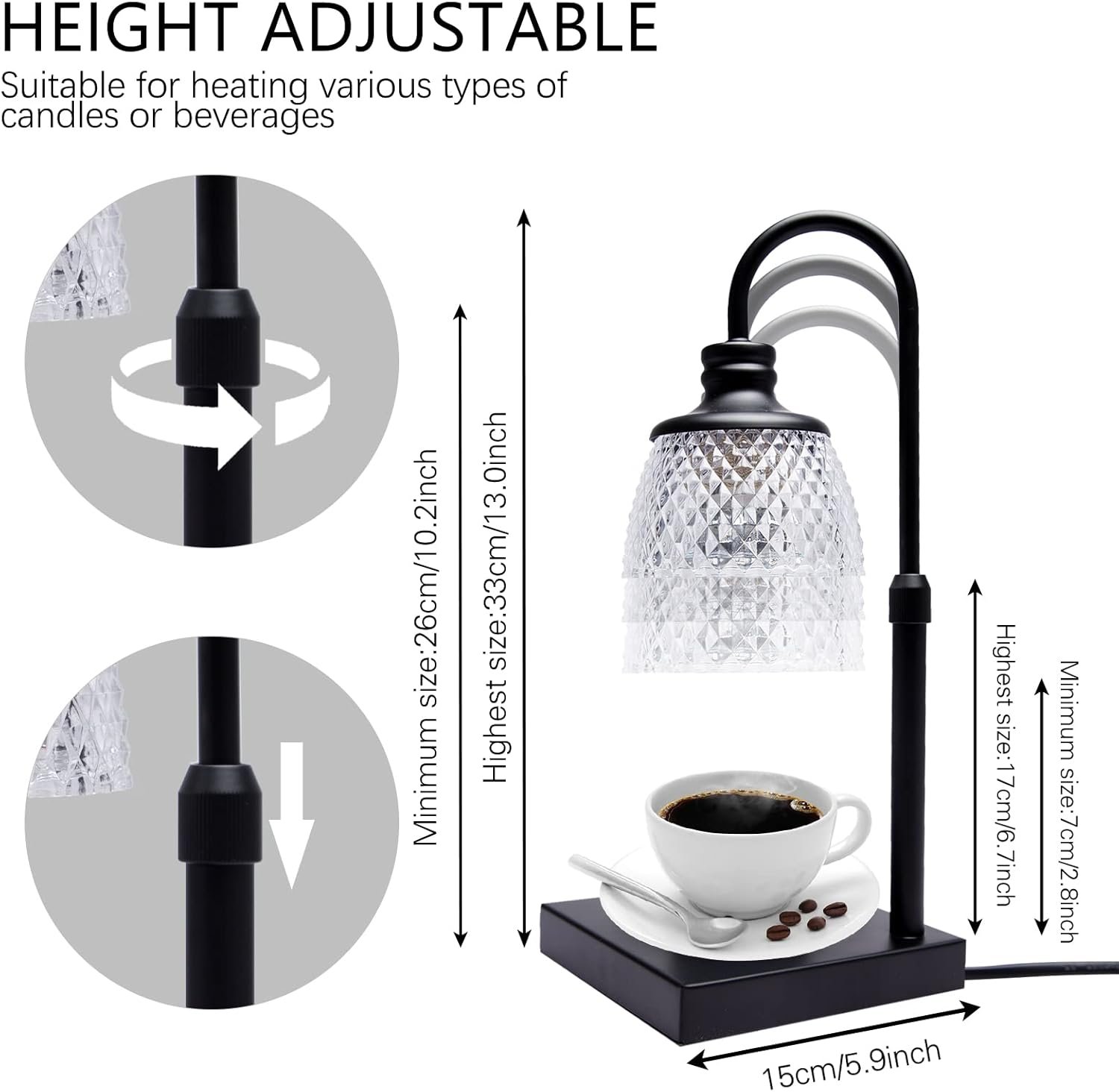 The candle warmer lamp adopts an adjustable height design, which can accommodate various sizes of aromatherapy or cups, making your life more convenient. We have provided you with 2 bulbs of different degrees, which are enough to meet your long-term use needs.product details:1. The textured crystal lampshade makes the wax melting lamp not monotonous, more beautiful, and can better embellish your room.2. The wax melting lamp adopts a reinforced base design, which is stable and firm and is not easy to shake.