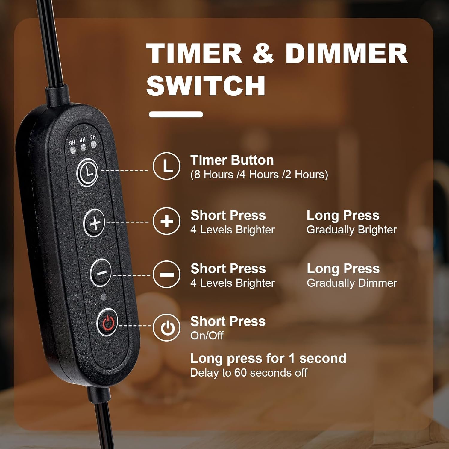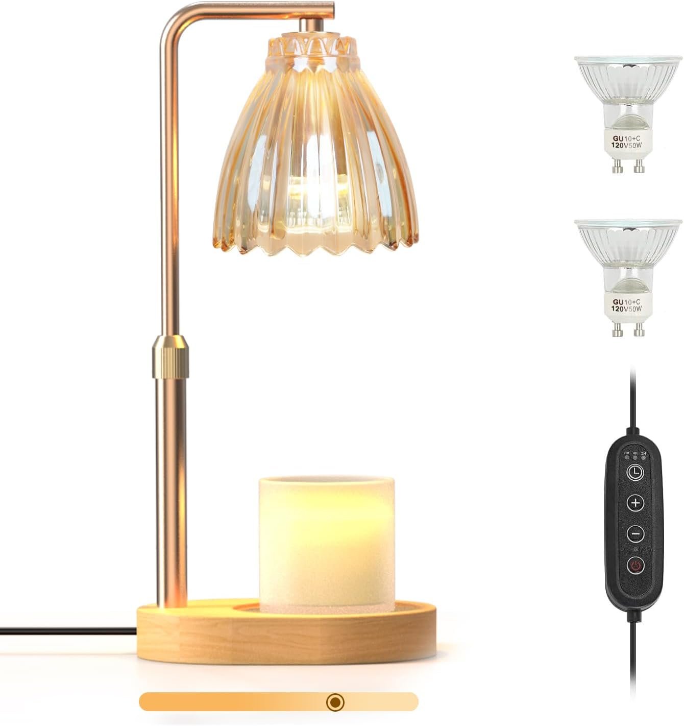 Candle Warmer Lamp features a dimmer control, the brighter the setting, the faster the wax melts. It also has a timer function that can be set for 2, 4 or 8 hours.