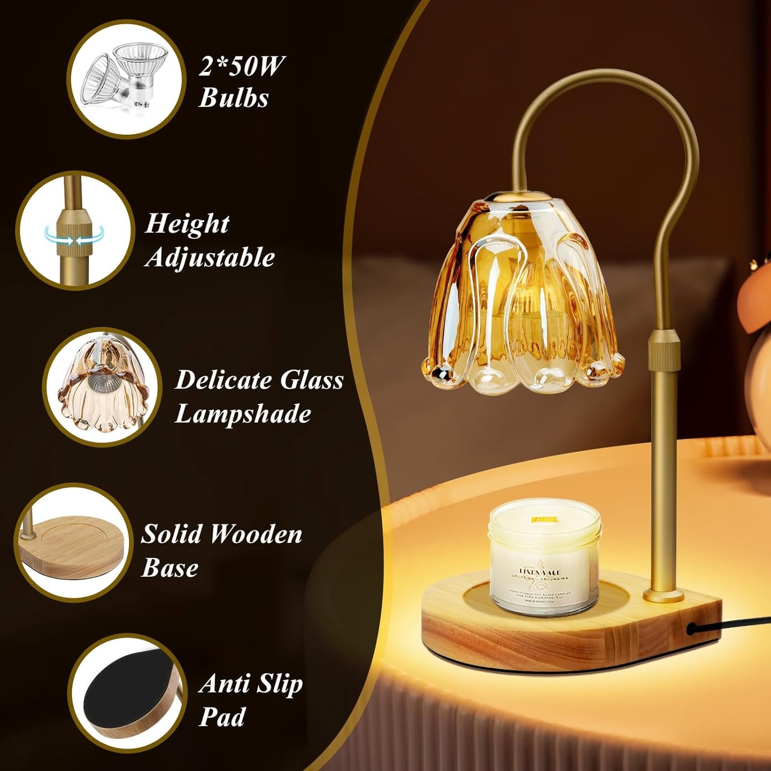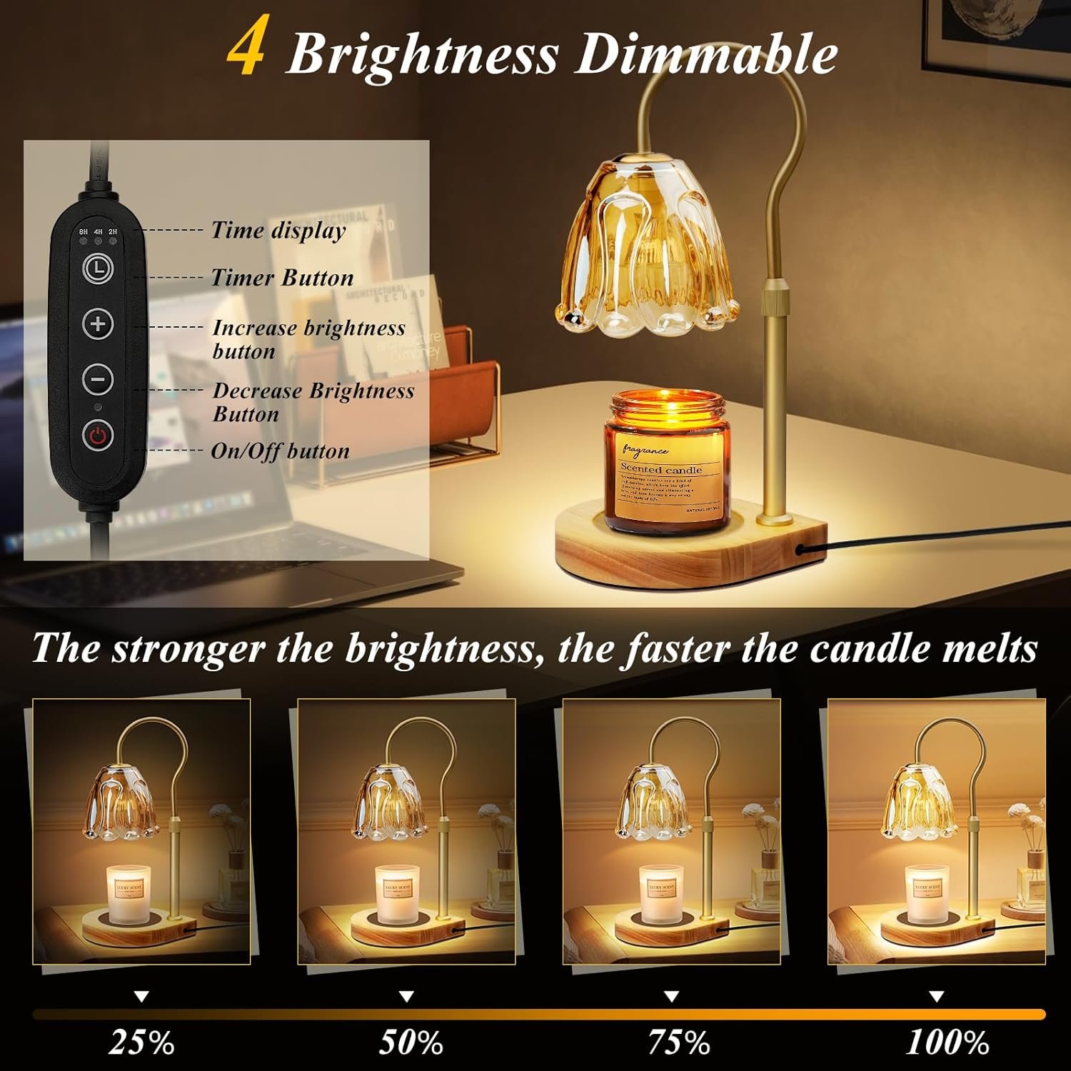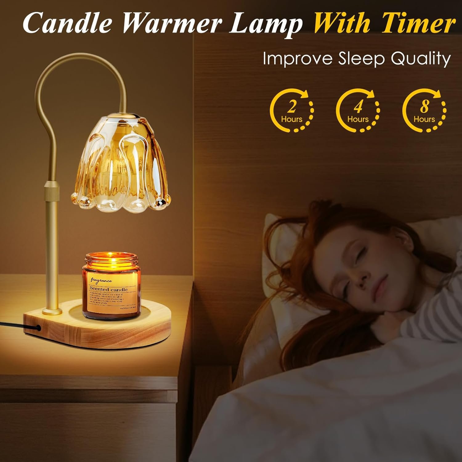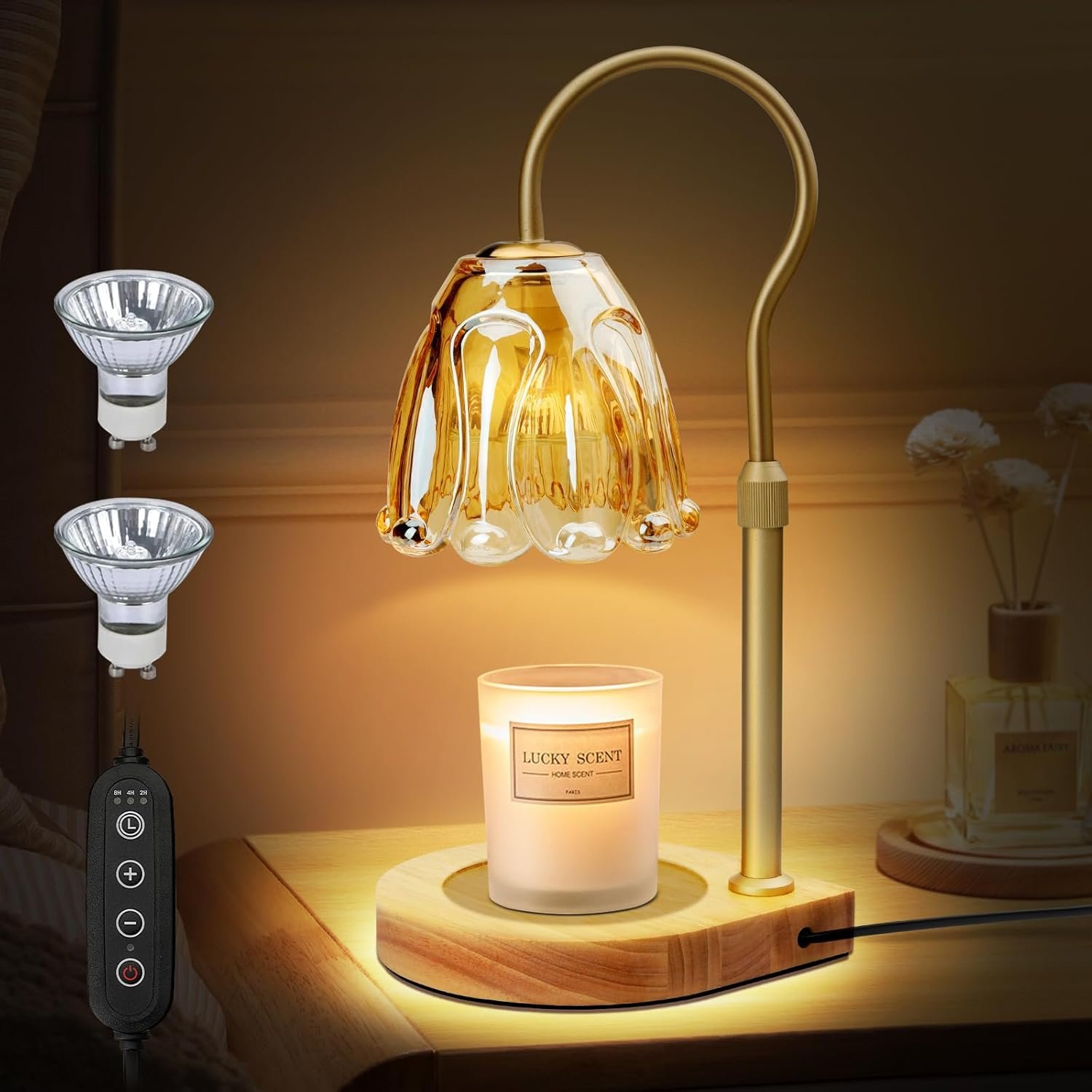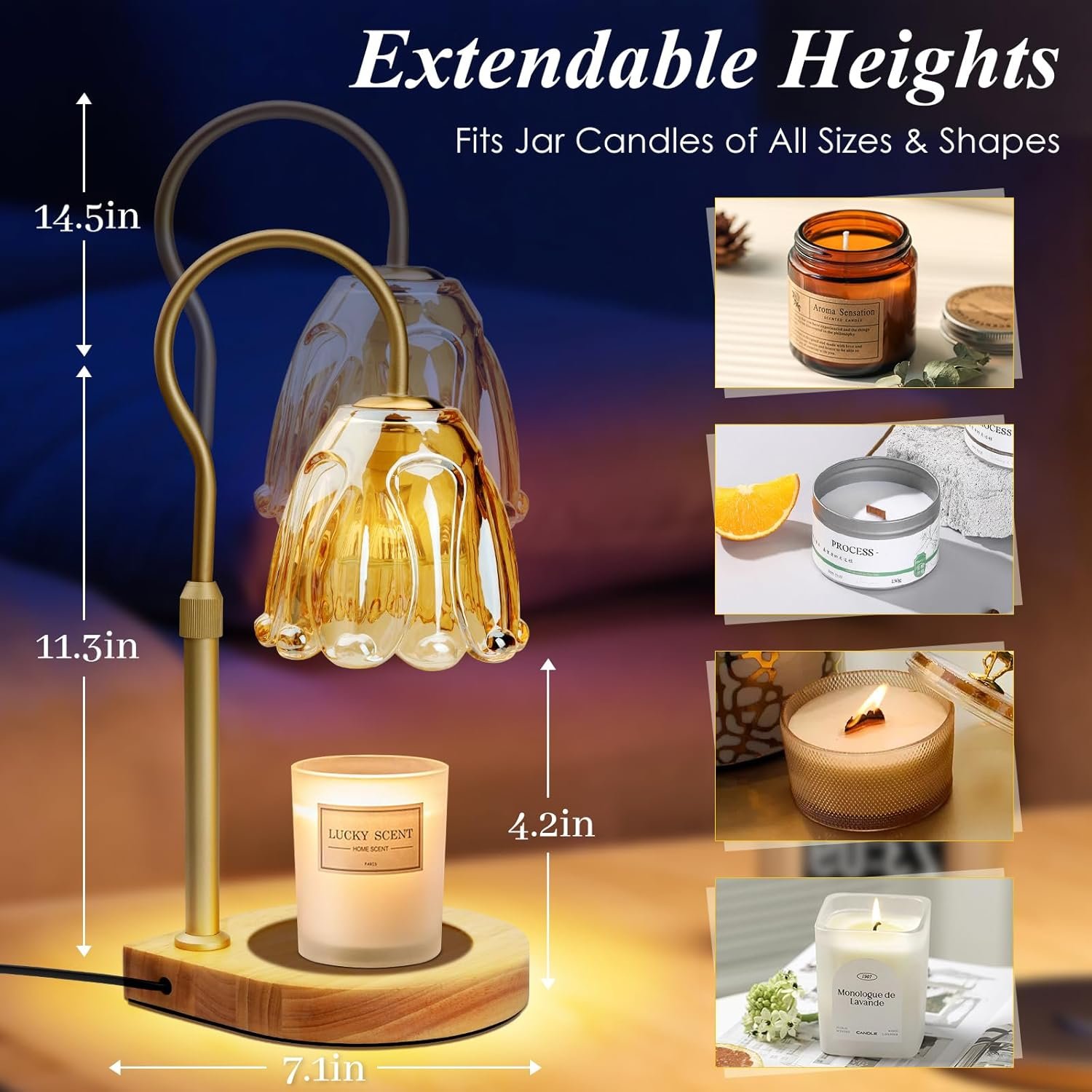 Transform the atmosphere in your home with our Candle Warmer Lamp with Timer and Dimmer Adjustable Height. Designed to safely warm your favorite scented candles without the need for an open flame, this candle warmer lamp allows you to fill the air with delightful aromas while eliminating the risk of fire hazards. The adjustable height feature lets you position the lamp at the perfect level for optimal fragrance distribution, while the dimmable light option allows you to create a cozy and relaxing ambiance. This electric wax melt warmer comes with two bulbs, ensuring a longer lifespan and continuous enjoyment of your favorite wax melts. With its delicate flower design, this candle warmer lamp adds a touch of elegance to any room, making it both a functional and decorative piece in your home. Elevate your sensory experience and indulge in the soothing scents of our Candle Warmer Lamp with Timer and Dimmer Adjustable Height.