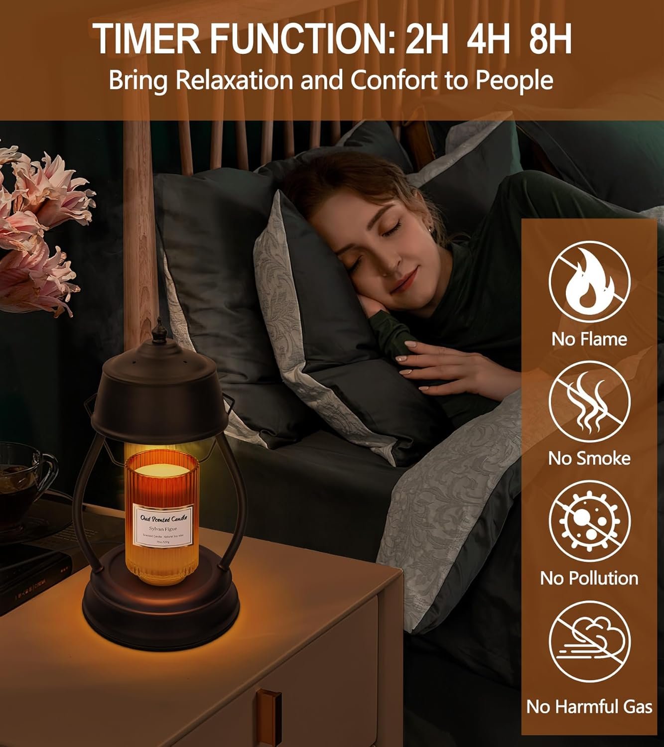 【Candle Lover Perfect Present】This electric candle warmer lantern is a rustic, exquisite and creative candle melting lamp. The lamp candle warmer will be the best Present to show your love to your mom, families, or friends on Mother’s Day, Valentine’s Day, Thanksgiving, Christmas, New Year, Housewarming or other special occasions. Enjoy the fragrance of your favorite scented candles.