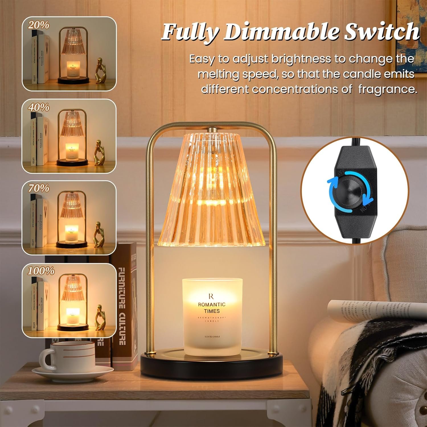 Candle Warmer Lamp, Electric Candle Lamp Warmer for Jar Candles, Dimmable Wax Melt Warmer with 2 Bulbs, Mom Christmas Gifts Birthday House Warming Gifts New Home, Vintage Home Bedroom Decor