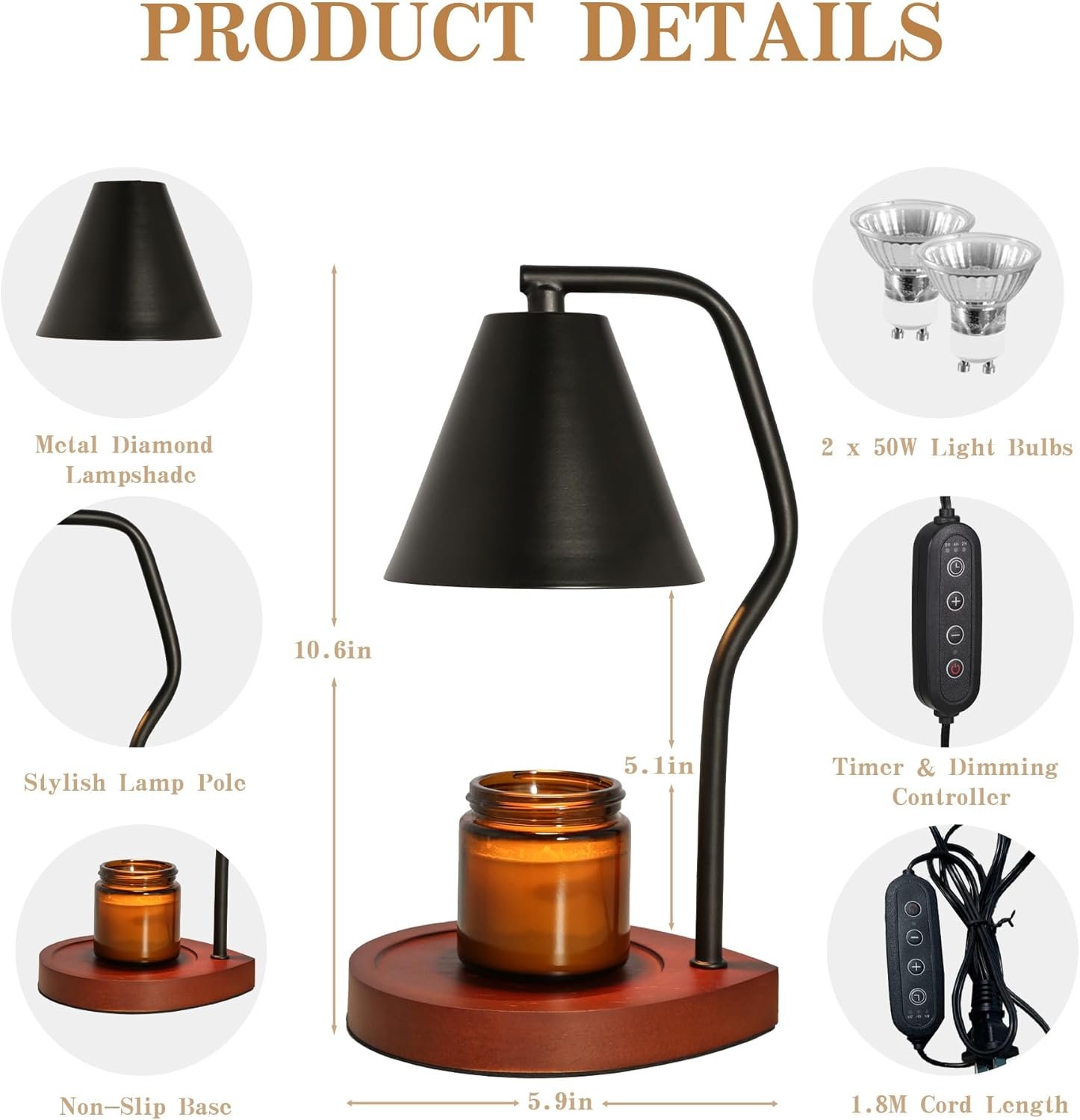 Candle Warmer Lamp, Electric Candle Lamp with Timer & Dimmer, Wax Melt Warmer with 2 Bulbs for Candle Jars, Candle Light for Scented Home Bedroom Aesthetic Decor, House Warming Gifts New Home