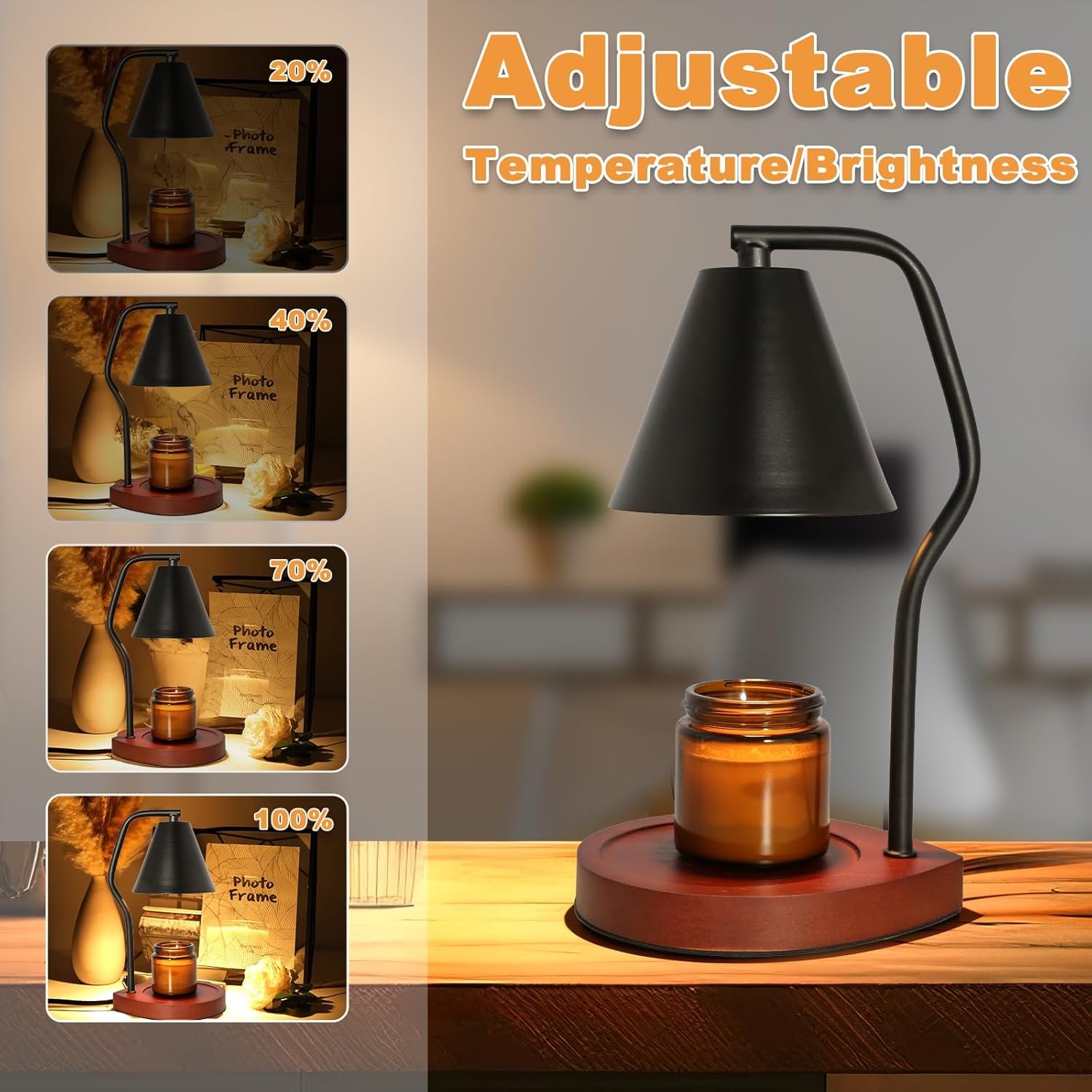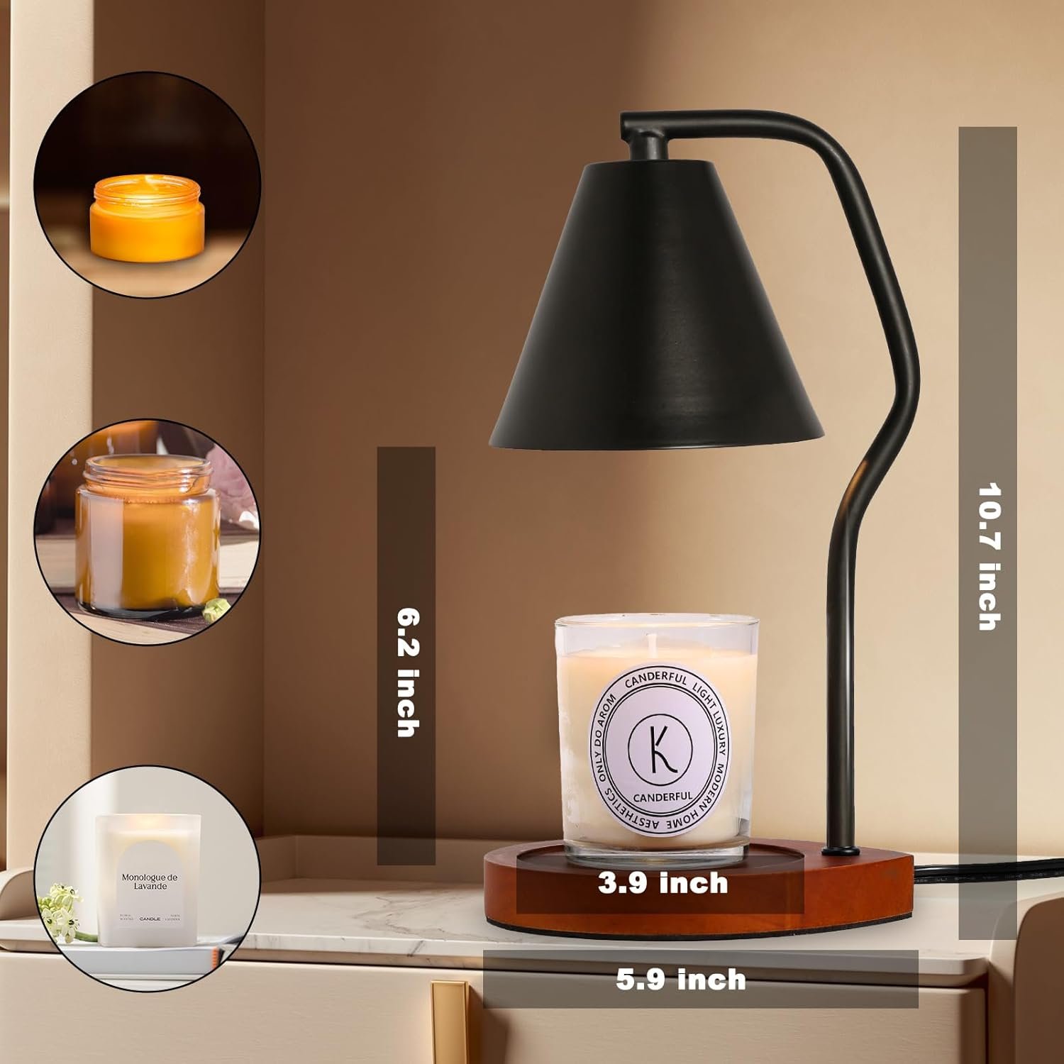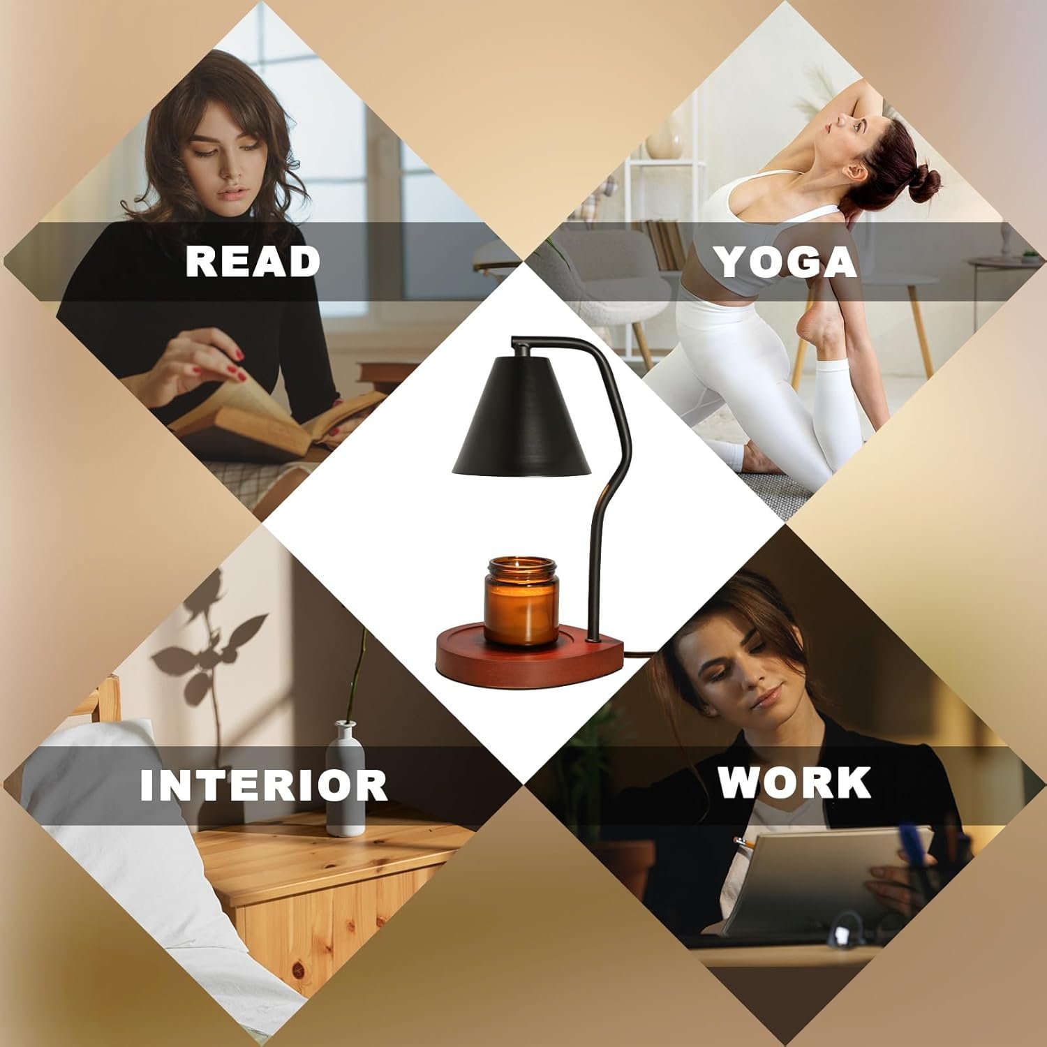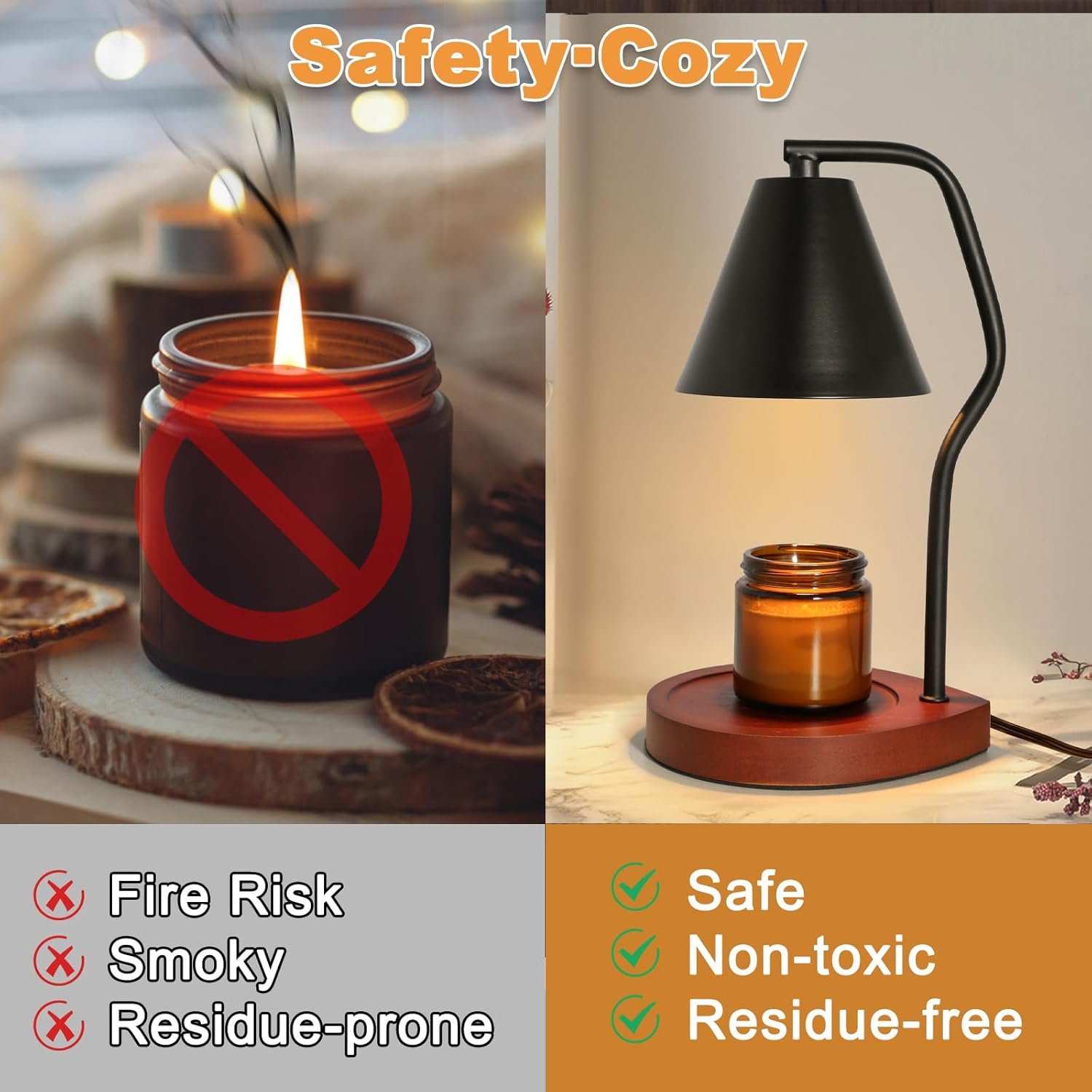 Superior Craftsmanship: Candle warmer lamp black features a double-layer thickened iron lampshade with an 80% heat insulation rate, ensuring durability and safety. Say goodbye to worries about low-quality glass lampshades cracking due to high temperatures. The premium high-temperature baking paint metal lamp body, paired with a natural wood base, ensures the electric candle warmer lamp for jar candles adds lasting and stylish charm to your home decor