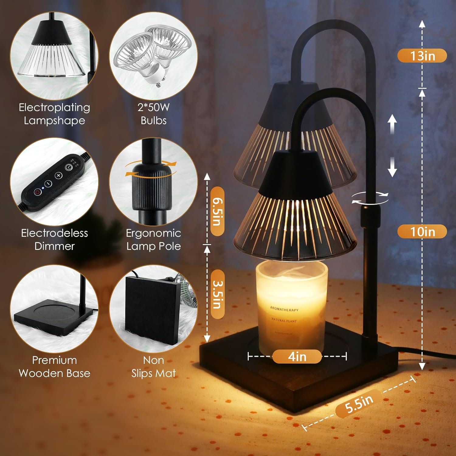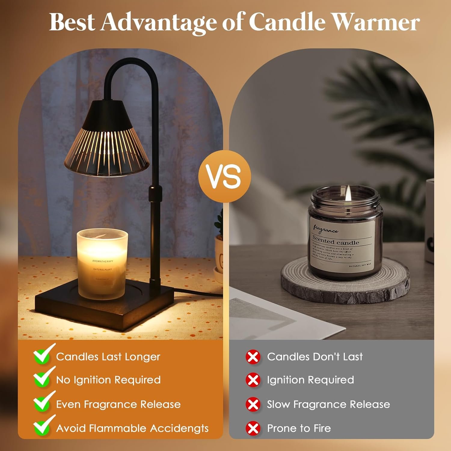 ADJUST HEIGHT AND BRIGHTNESS TO CONTROL MELTING SPEED: The light pole is made of wear-resistant metal housing, you can adjust the height of the top down candle warmer at will. With the easy turn of a button, the height can be adjusted to between 10 -13 inches, making wax warmer for scented wax compatible with all candle sizes. Interestingly, you can use different height brightness (temperature) to control the candle melting speed. Our candle warmer lamp with timer is a good choice