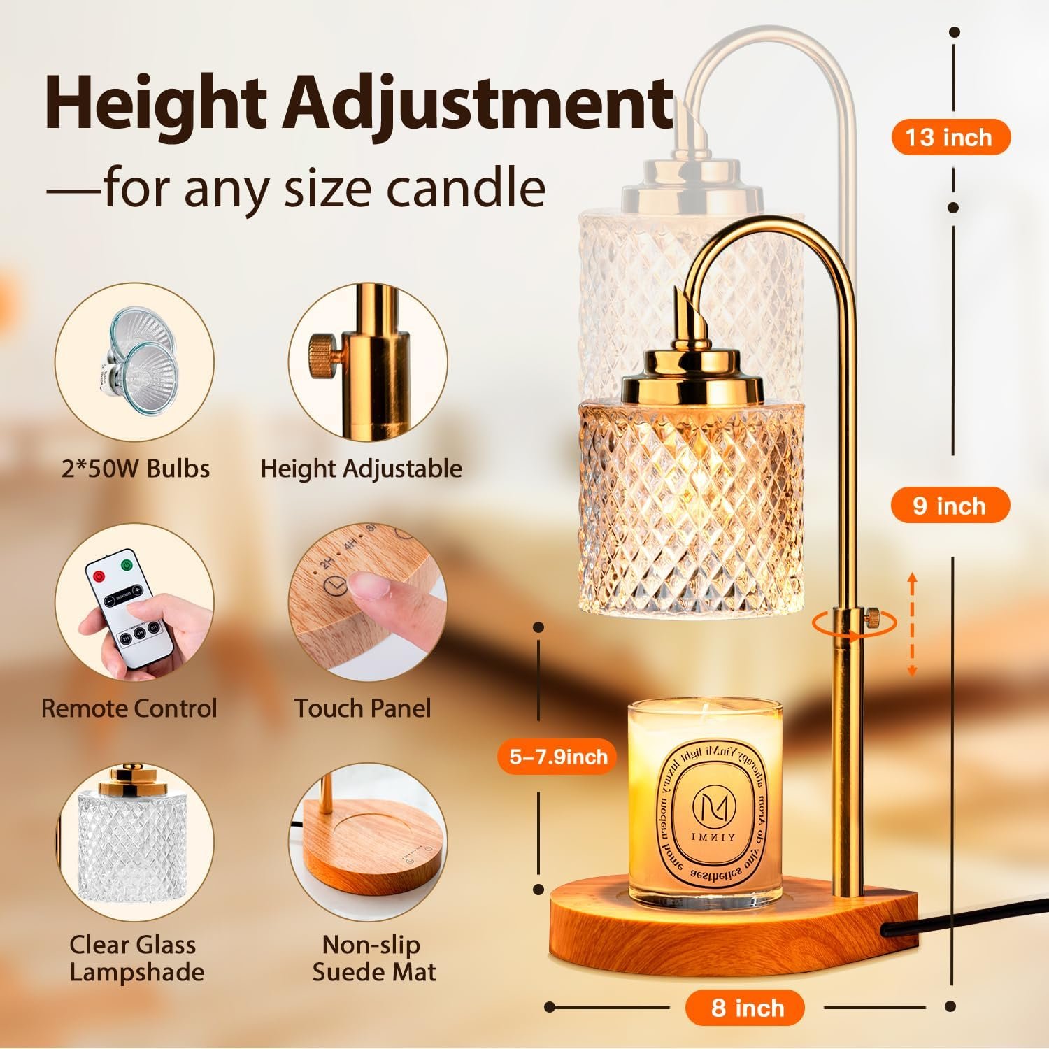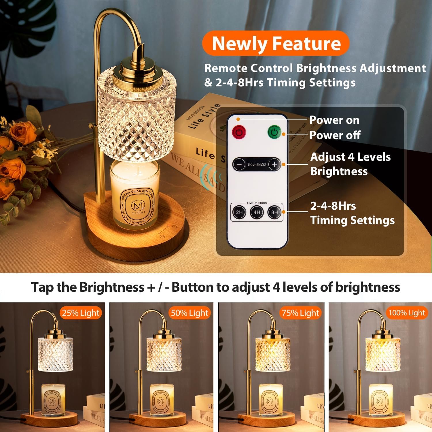 Candle Warmer Lamp, Remote Control & Touch Panel, Latest Upgraded Candle Lamp Warmer with 2-4-8H Timing, 4-Level Dimming, Height Adjustable, 2 Bulbs for Home Decor for Mom