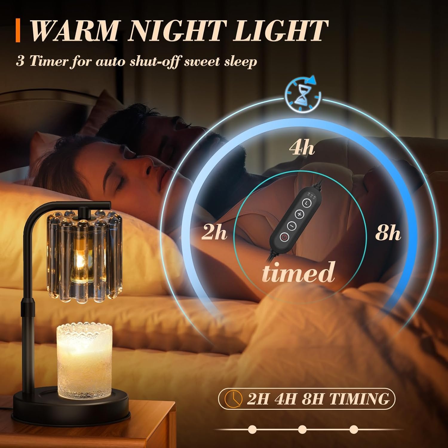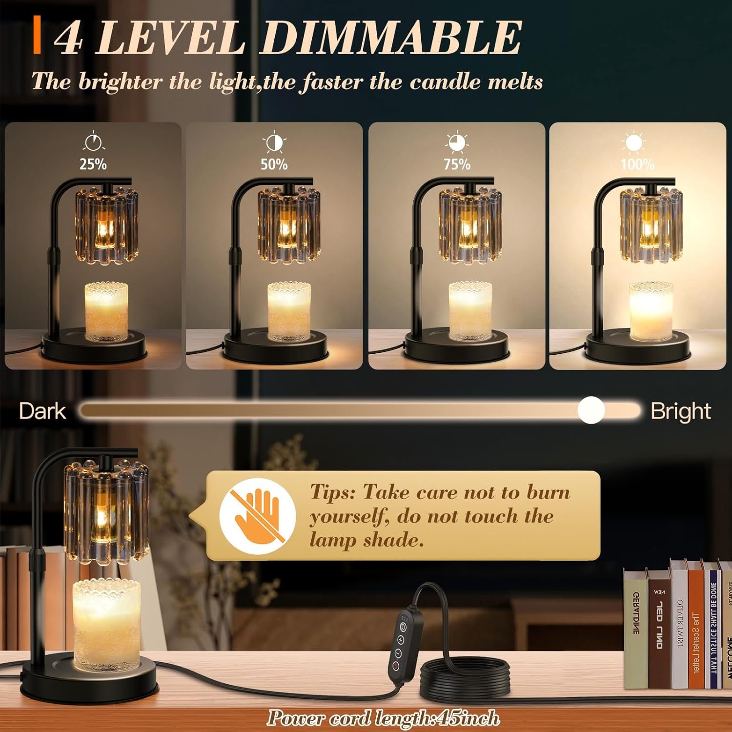 The candle warmer lamp with timer has 4 brightness levels&3 different timers (2h, 4h, 8h), you can adjust the candle warmer lamp according to different occasions and moods, which is more convenient and safer.