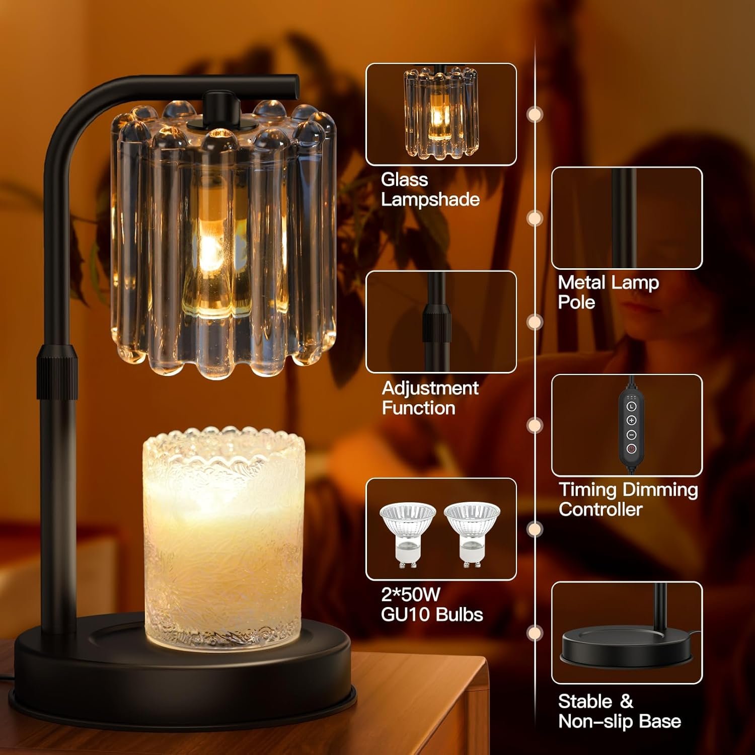 【Enjoy Your Favorite Candle】Indulge in the warm glow of our newest classic large candle warmer lamp, crafted with exclusive research technology. The fusion of the metal base and dark glass shade emits a premium soft ambient light, filling your space with happiness and tranquility at the end of the day. this light candle warmer lamps Not just a light source, it aslo tasteful home decor