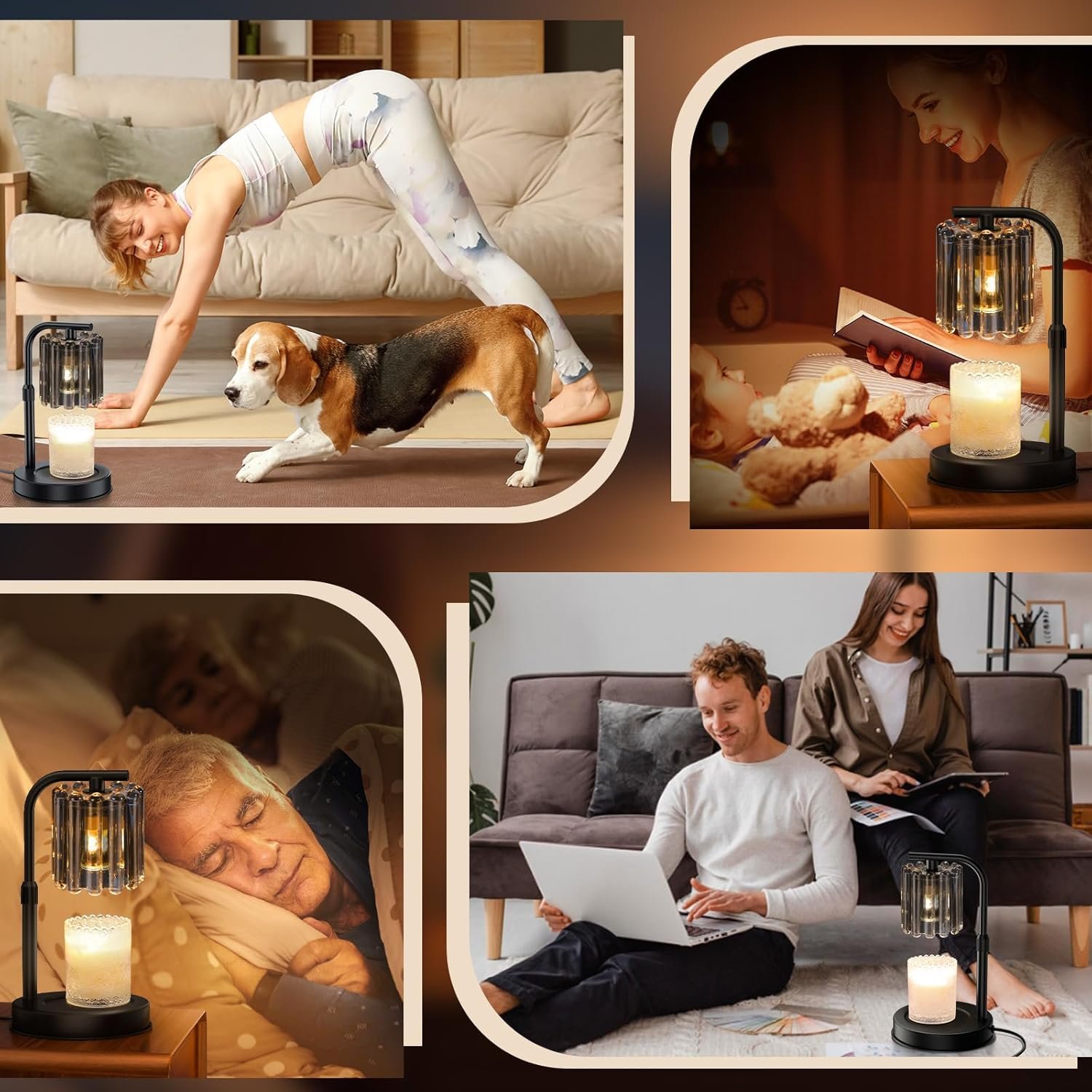 【4 Brightness & 8H Timing Function】The candle warmer lamp black with 4 levels of brightness, You can control how long the candle lasts, the brighter the light, the faster the candle melts. this electric 3 wick candle warmer lamp With timer function (2H/4H/8H), don’t need to worry about forgetting the heating time while enjoying the fragrance, ensuring a peaceful sleep or relaxation at any time