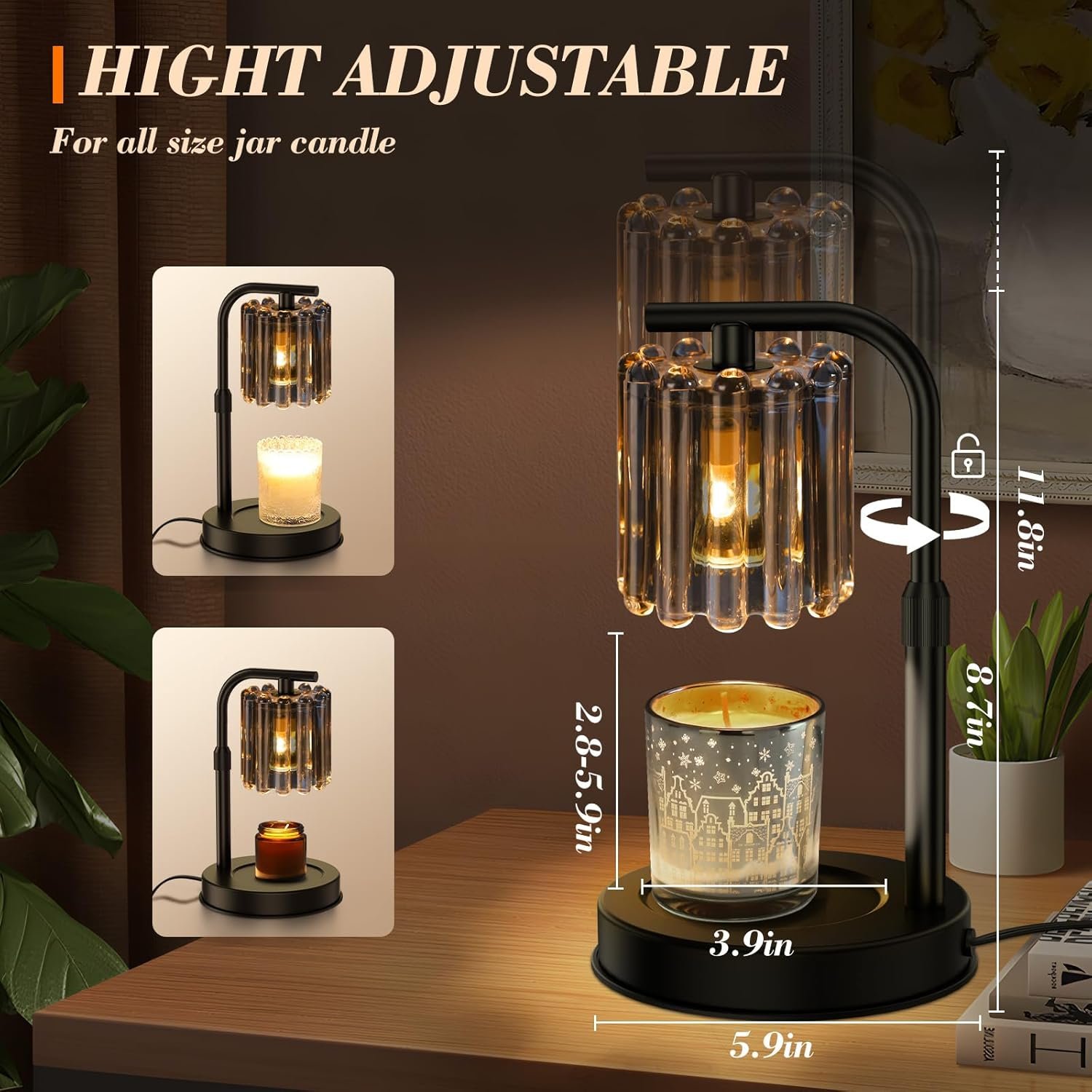 The height of the candle wax melt warmer can be adjusted from 9.8 to 13.8 inches which is compatible with candles that are less than 8 inches in height!