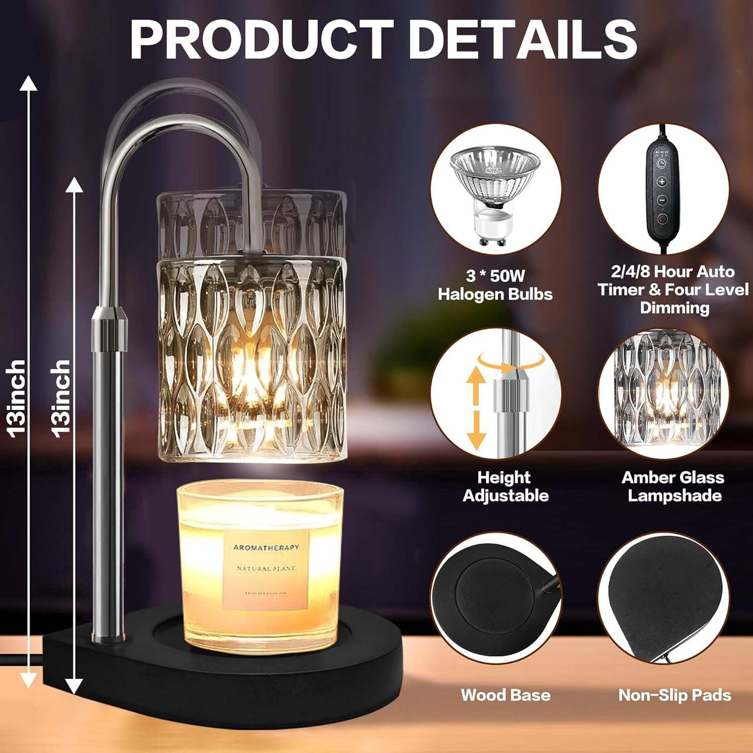 Adjustable Height & Fits all Candle Sizes: This adjustable DALUXshop candle warmer lamp is equipped with a smooth, height-adjustable metal rod and a durable, wear-resistant natural wooden base adorned with charming wood grain decorations. Its non-slip bottom design ensures stability and peace of mind, effortlessly accommodating candles of various sizes