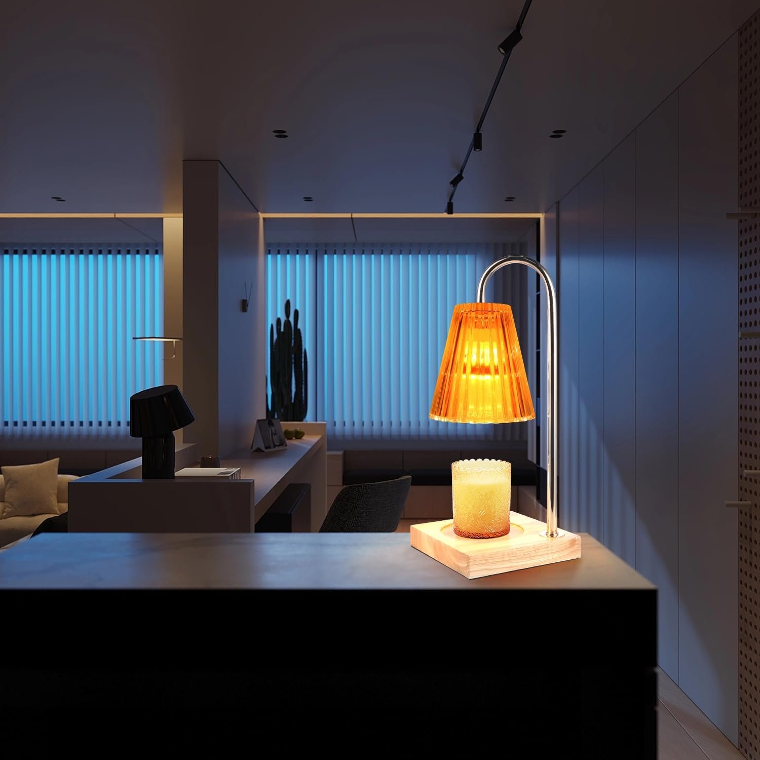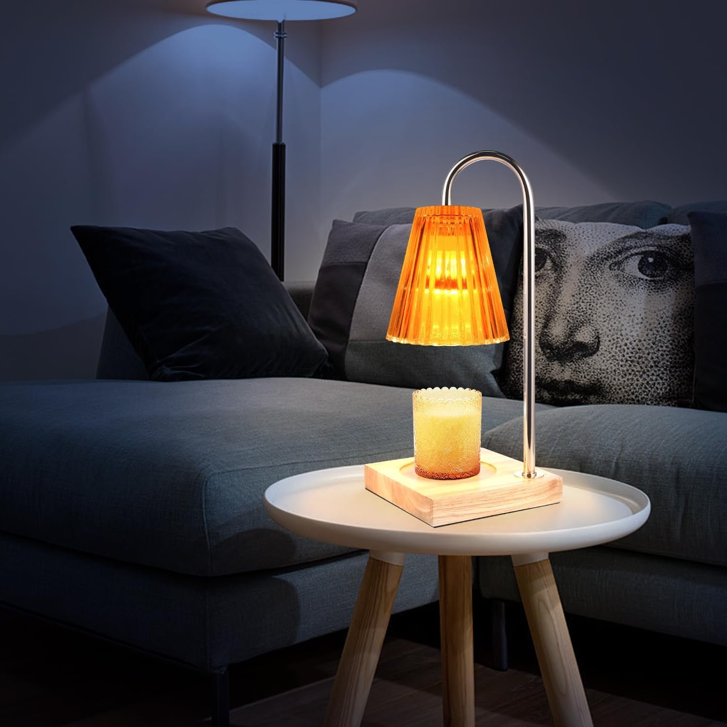 High quality appearance design: The base of the candle warmer lamp is made of high quality solid wood, with a central groove designed to prevent scented candles from falling and to fit all sizes of candles. The exquisite iron body of the lamp is not easy to rust and durable, and the clear glass shade is stylish and textured with good light transmission