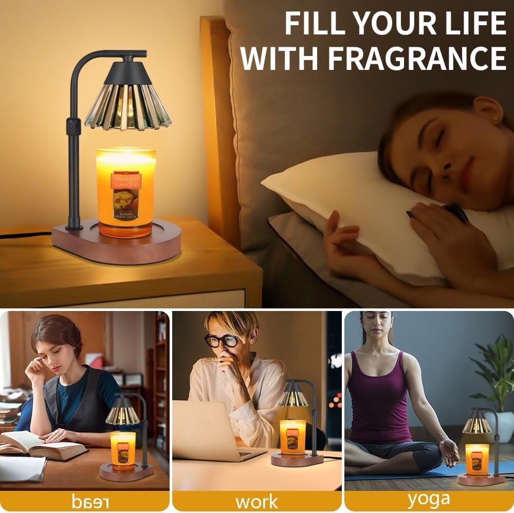 PERFECT HOME DECOR:This candle warmer is a stylish combination of wooden base, metal body and glass shade, blending classic and modern design. Wax melting warm smelling wax as delicate and functional decorative lamp used for bedroom decor, living room decor aesthetics, den, office, yoga room, and more.
