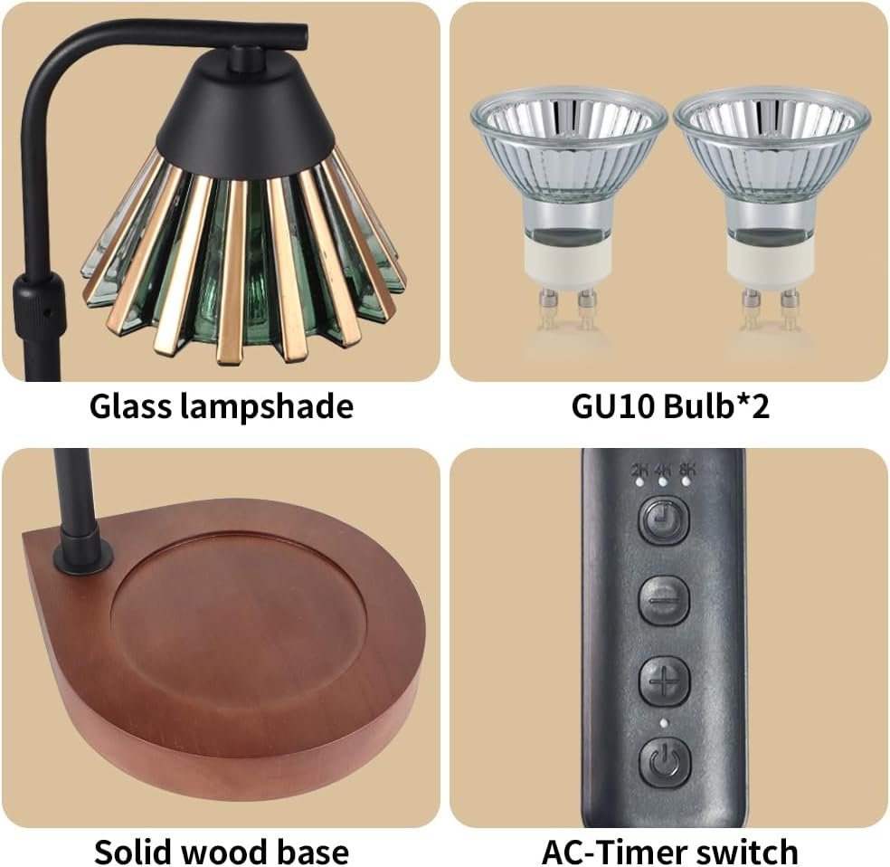 EFFICIENT & ADJUSTABLE, SCENT IN MINUTES:Electric candle warmer uses a 50W GU10 halogen bulb to melt candles and wax from top to bottom for fast and efficient scenting. With the dimmer control of the Aesthetic Home Decor Lights Candle Warmer, you can adjust the melting speed. The brighter the environment, the faster it melts. In addition, you can set the 2/4/8 hour off function of this candle warmer lamp.