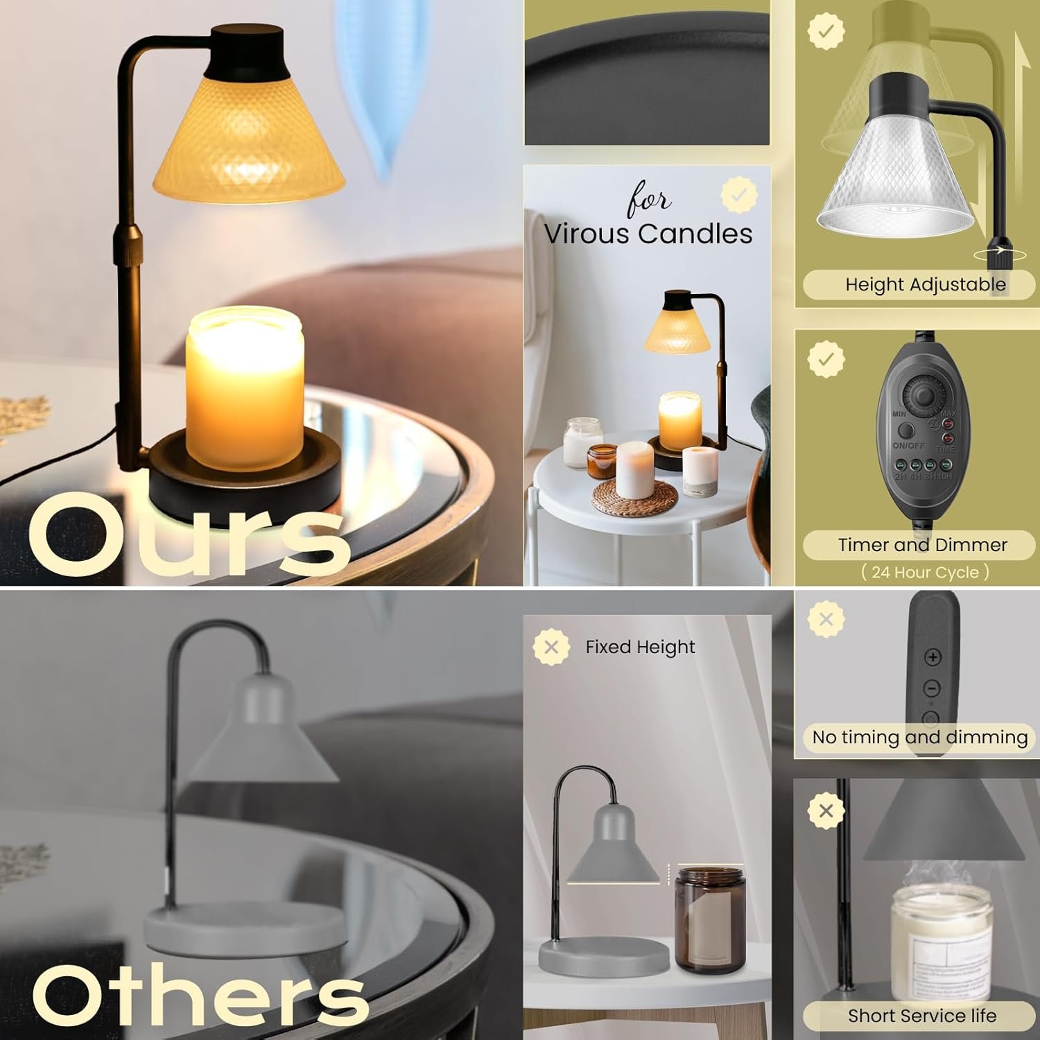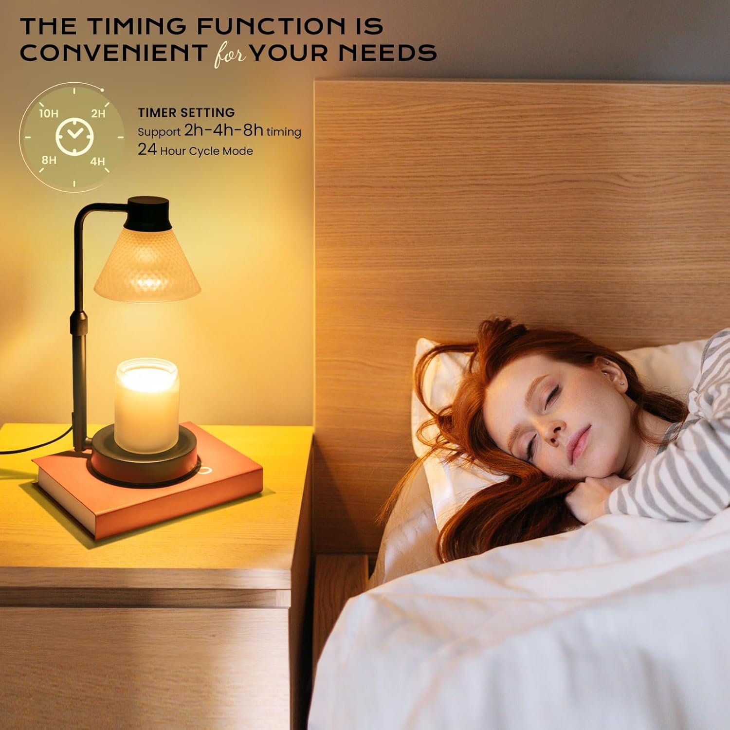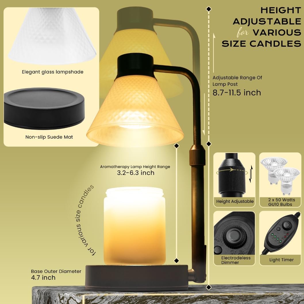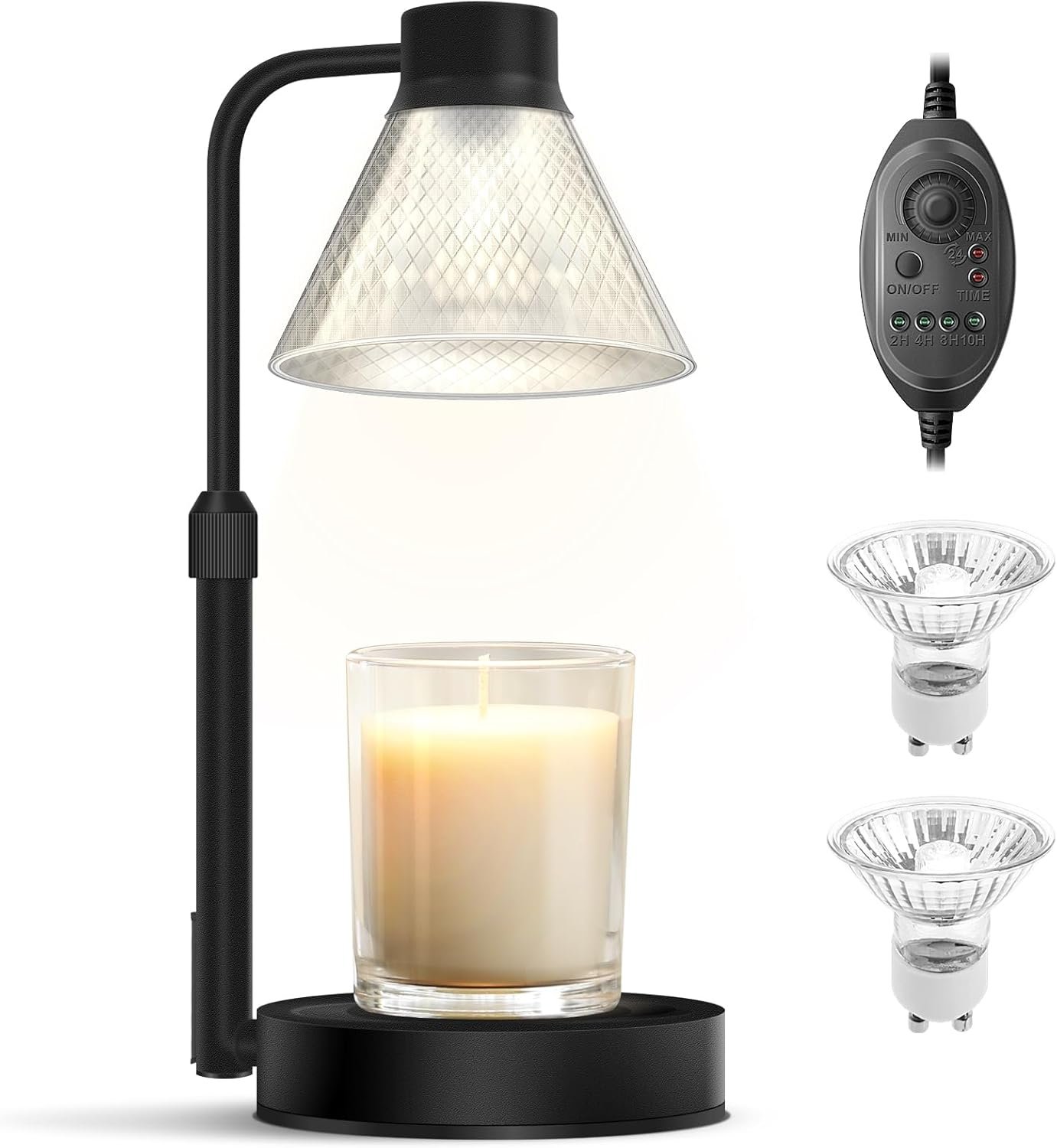 Candle Warmer Lamp with Timer – Electric Adjustable Candle Warmer with 2 50W Bulbs – Bedroom Decoration (Black)