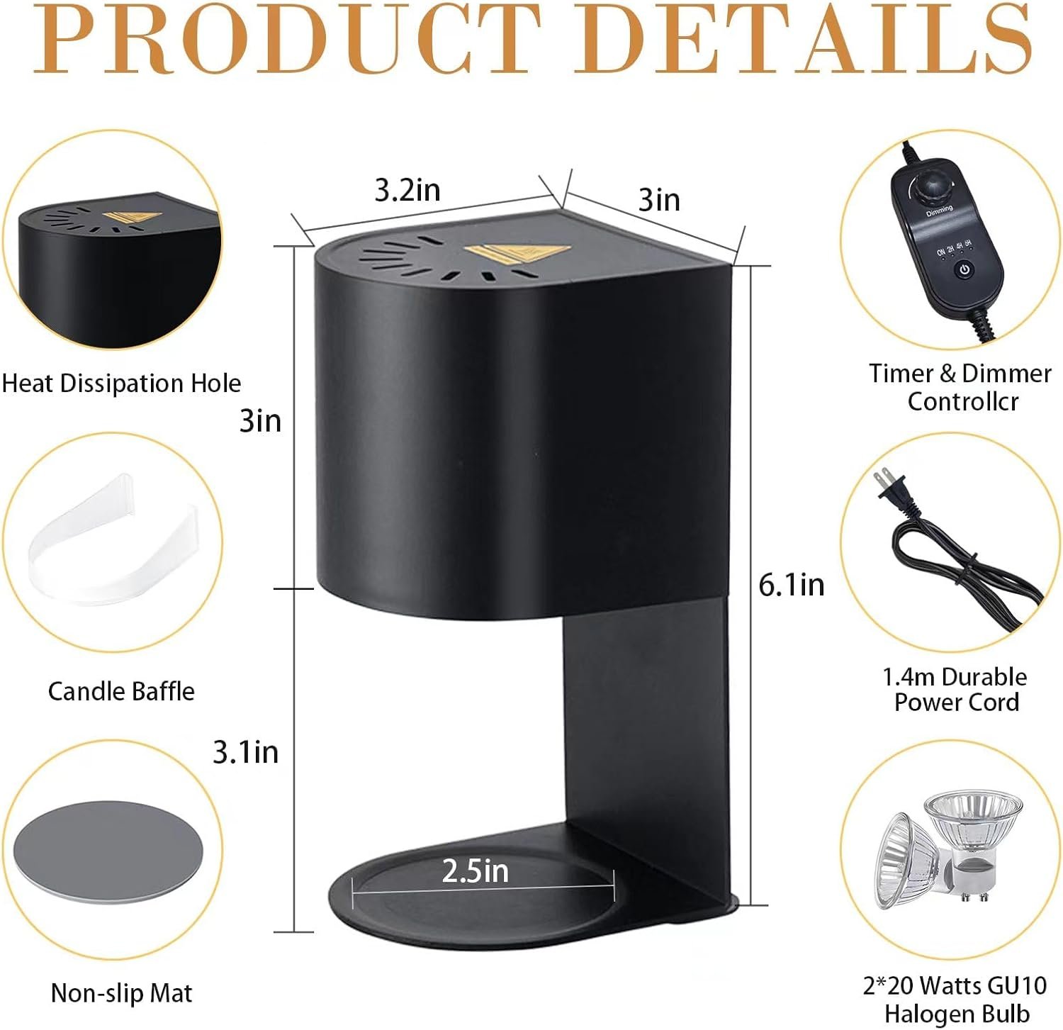 【Flameless, Even and Lasting Fragrance Diffusion】The mini candle warmer lamp utilizes a 20-watt halogen bulb (2 bulbs included) to generate heat, melting the candles from top to bottom. Say goodbye to candle flames, smoke, and post-combustion pollution. The candle warmer also reduces the risk of fire hazards while ensuring candles melt evenly, releasing fragrance for a longer duration.