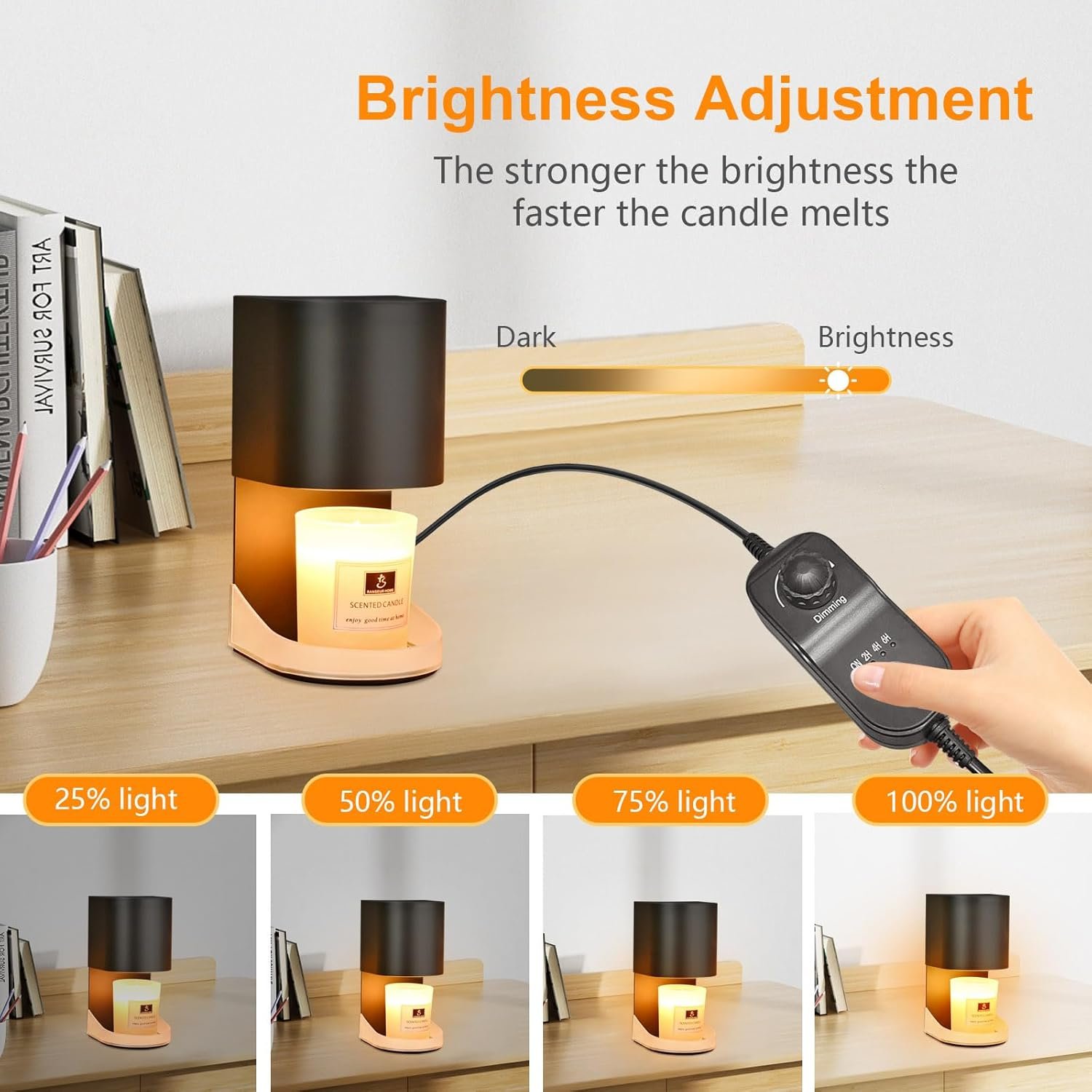 【Timing and Dimming Function】Enjoy customizable scent control with our candle warmer lamp. The rotary switch allows you to adjust the brightness. The speed at which the candle melts depends on the brightness of the light, the higher the brightness, the faster it melts. Our candle warmer lamp can be turned off by timer feature 2H/4H/6H,with peace of mind sleep and play anytime.