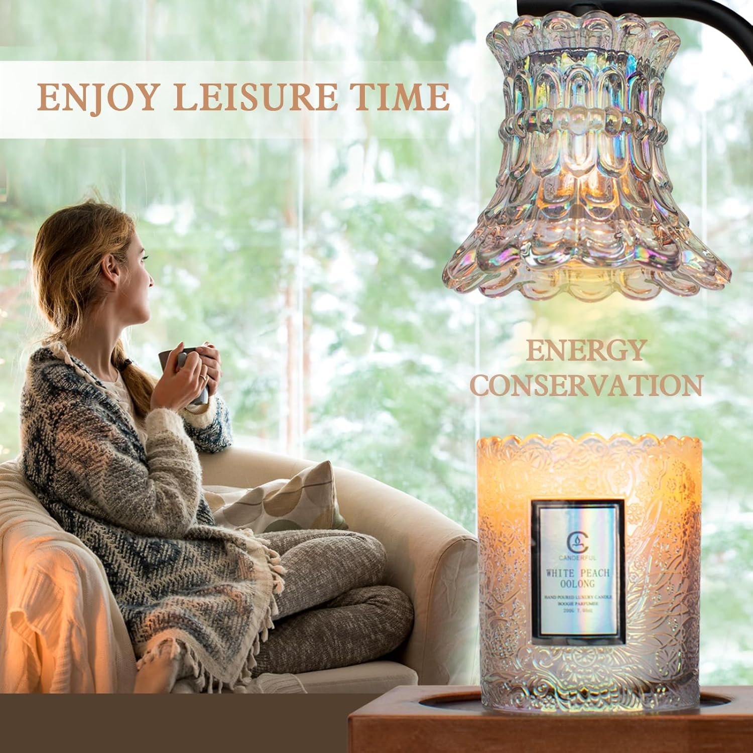 【Easy to operate & multifunctional】The candle lamps uses the heat of the light bulb to melt the candle from top to bottom.You can adjust the brightness of the top candle heater as needed.The brighter the light,the higher the temperature,the faster it melts,and the faster the fragrance emanates.Candle warmer light fit for all standard size jar candles.