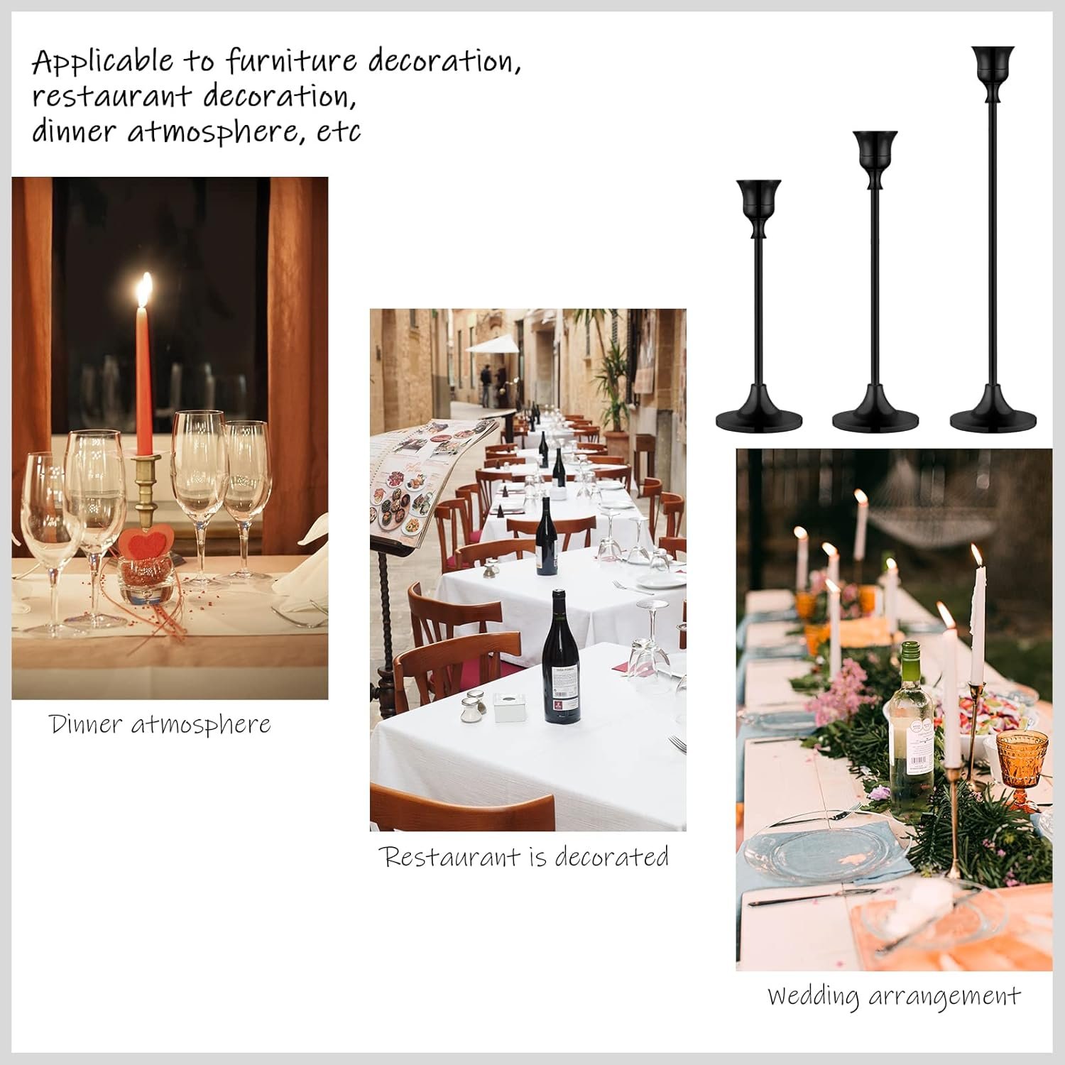👍【Sturdy and Stable black candlestick holders】Made with sturdy, durable metal,this candlestick holder is durable and sturdy enough to hold tall taper candles. Each black candle stick holder set can fit 3/4 inch-thick candle to match your dining table decor.It provides a stable base for your candles,ensures stability and longevity for your candles.