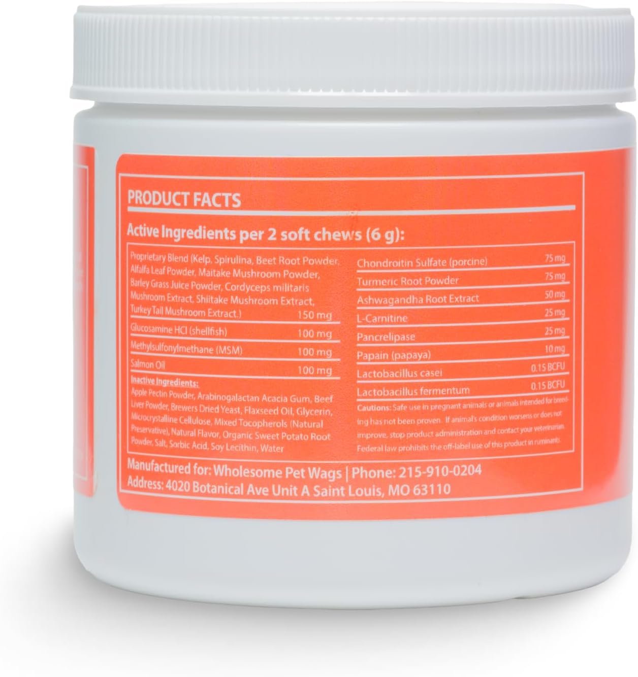 POWERFUL INGREDIENTS: This mix gives your dog everything they need for complete health. Our chews are loaded with MSM, Glucosamine, Turmeric, Salmon Oil, Papain, Probiotics, Chondroitin, L-Carnitine, Ashwagandha, and a special blend of mushrooms.
