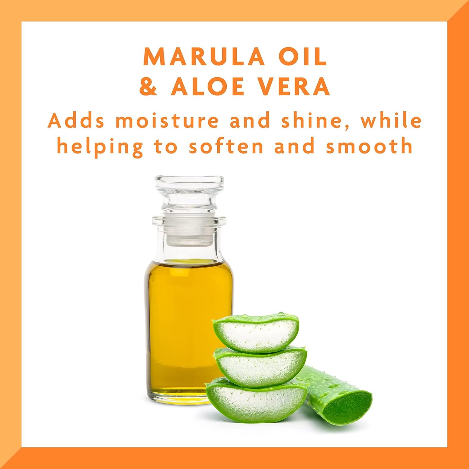 SOFTEN & HYDRATE: marula oil and aloe vera smooth and provide moisture to strands