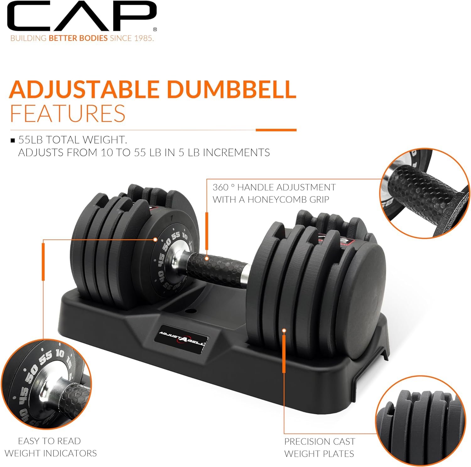 CAP Barbell ADJUSTABELL® Dumbbell |12.5lb, 25lb, 55lb | Single or Pair