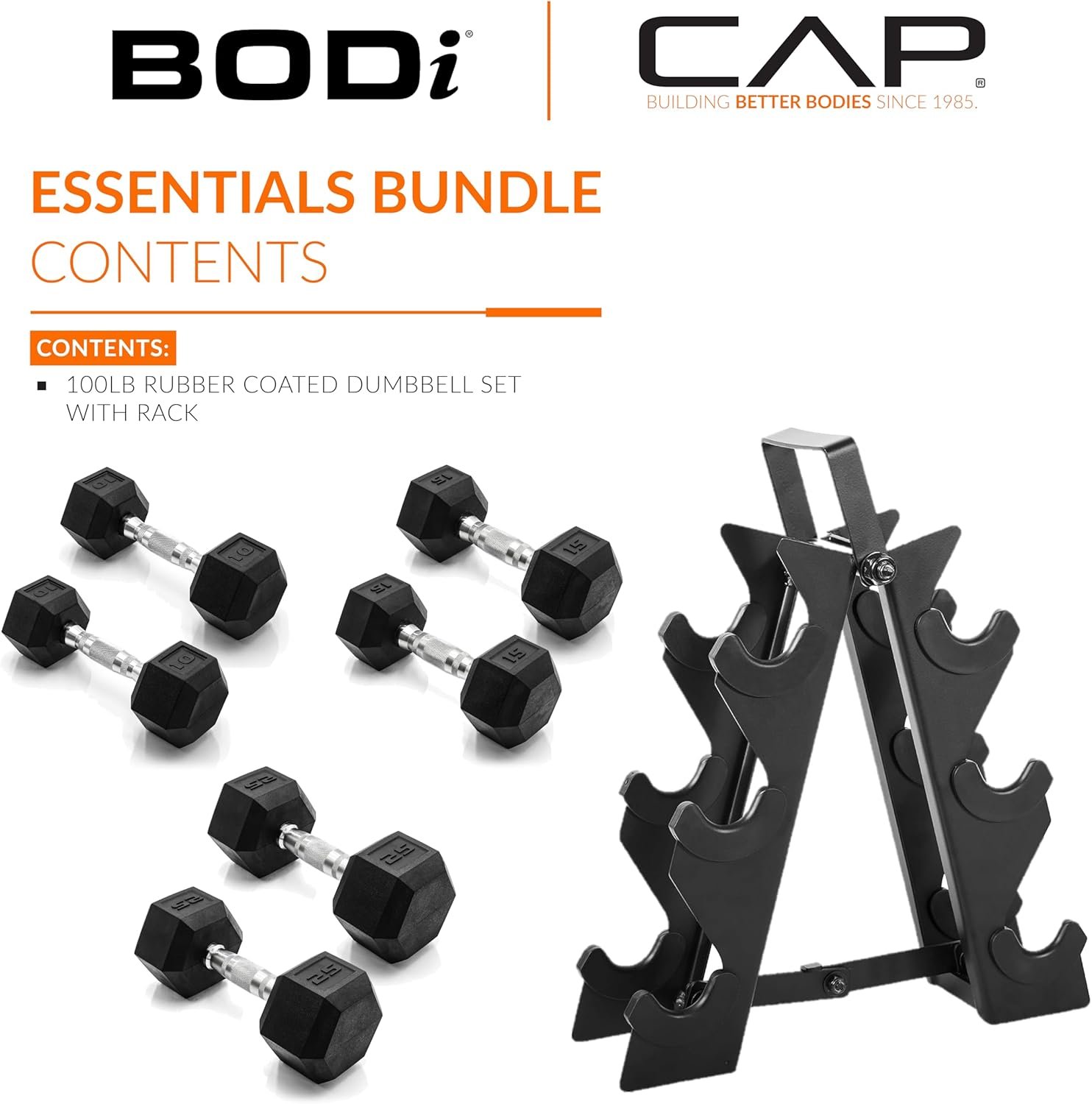 SET INCLUDES – A pair of 10-pound, 15-pound, and 25-pound rubber hex dumbbells with a black A-frame dumbbell rack to store the weights. E-commerge packaging. This set ships in multiple boxes.