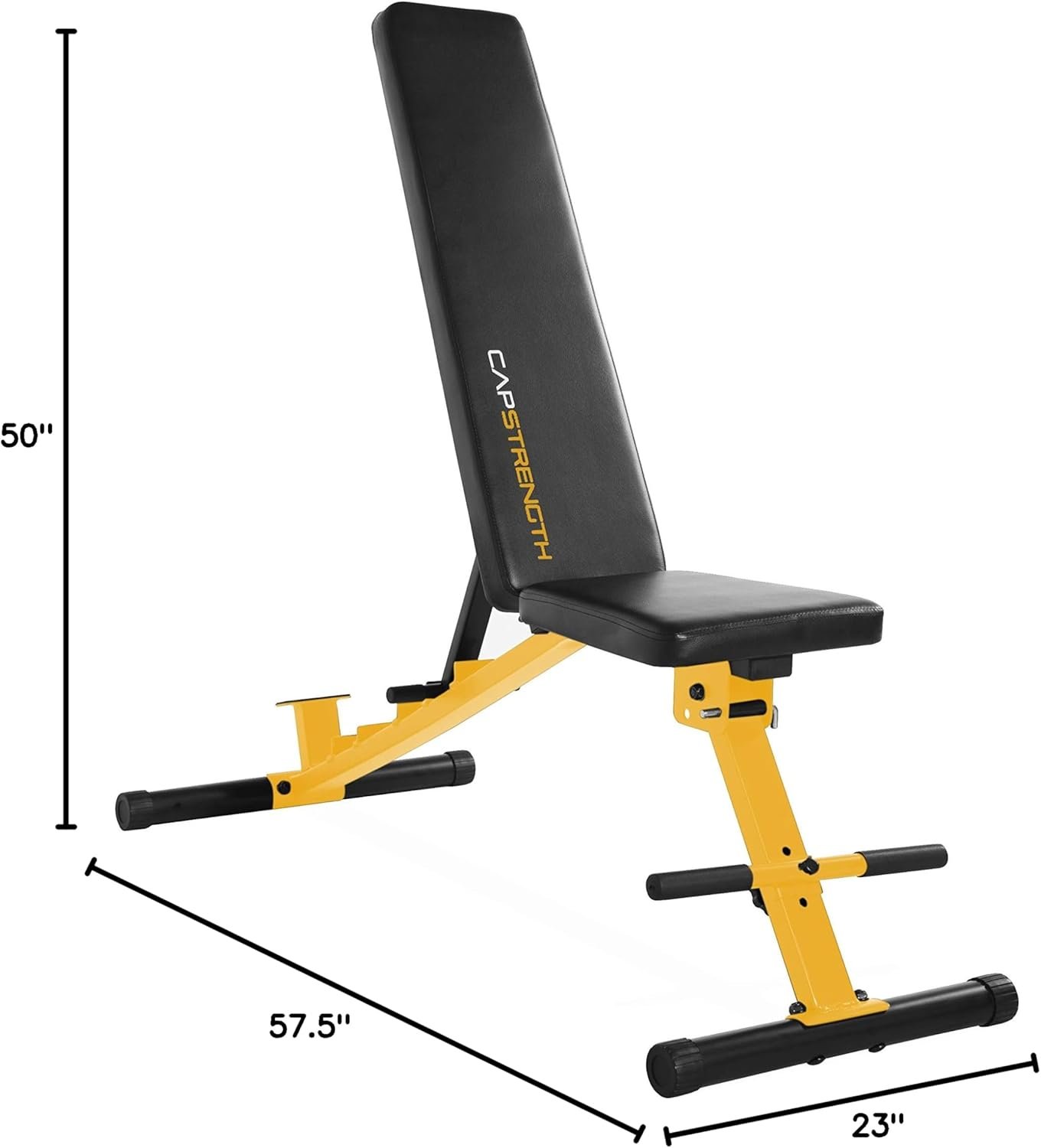 specs – maximum assembled bench dimensions are 57. 5 l x 23 w x 50 h inches (at full incline), 57. 5 l x 23 w x 19 h (in flat position)