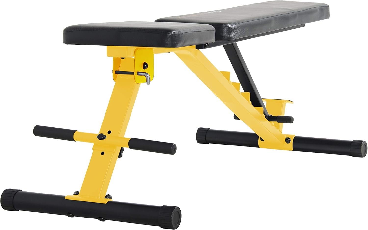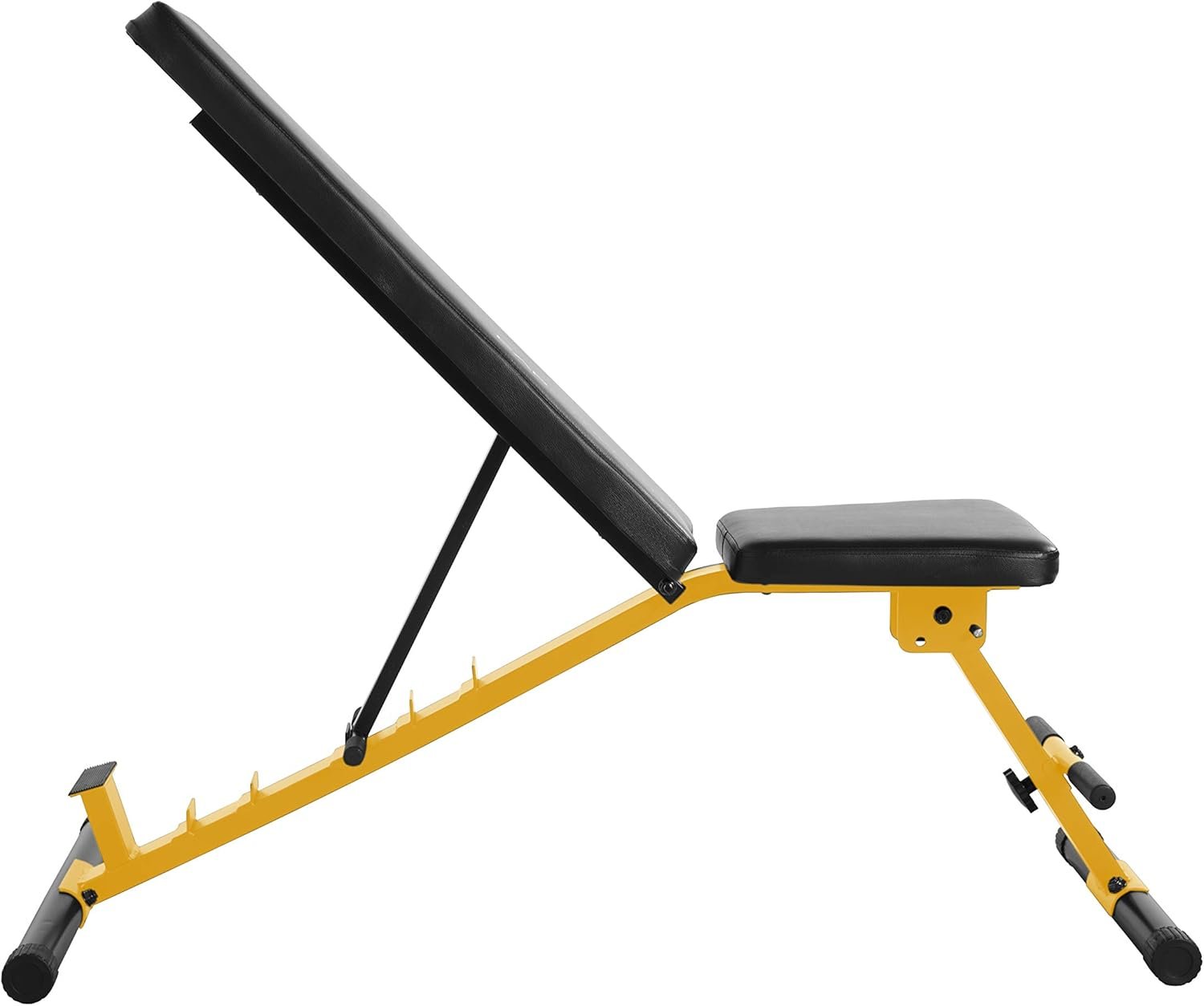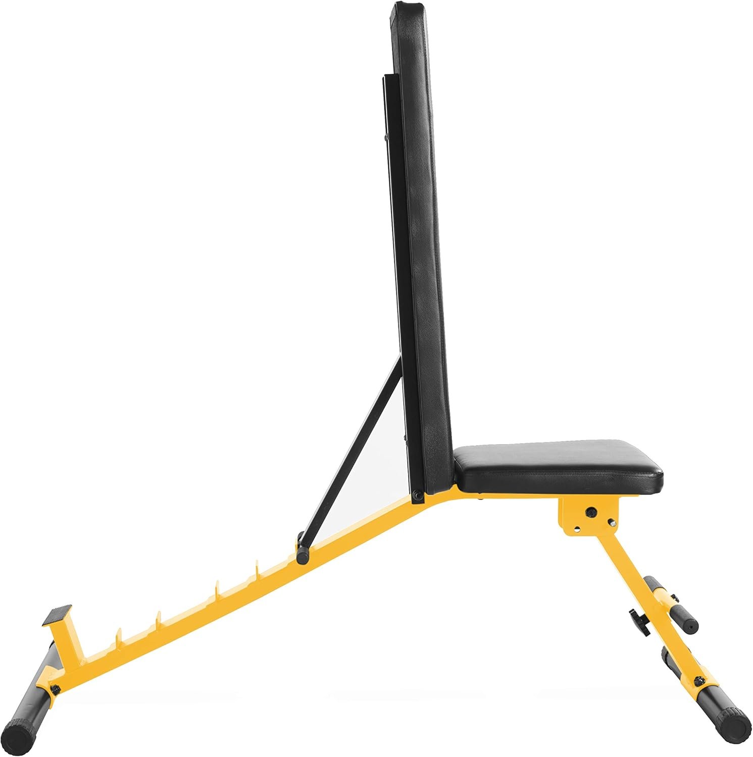 reliable – durable yellow powder coat finish and zinc hardware provide exceptional maintenance-free durability. the end caps on the front and rear stabilizers prevent the bench from scratching the floor