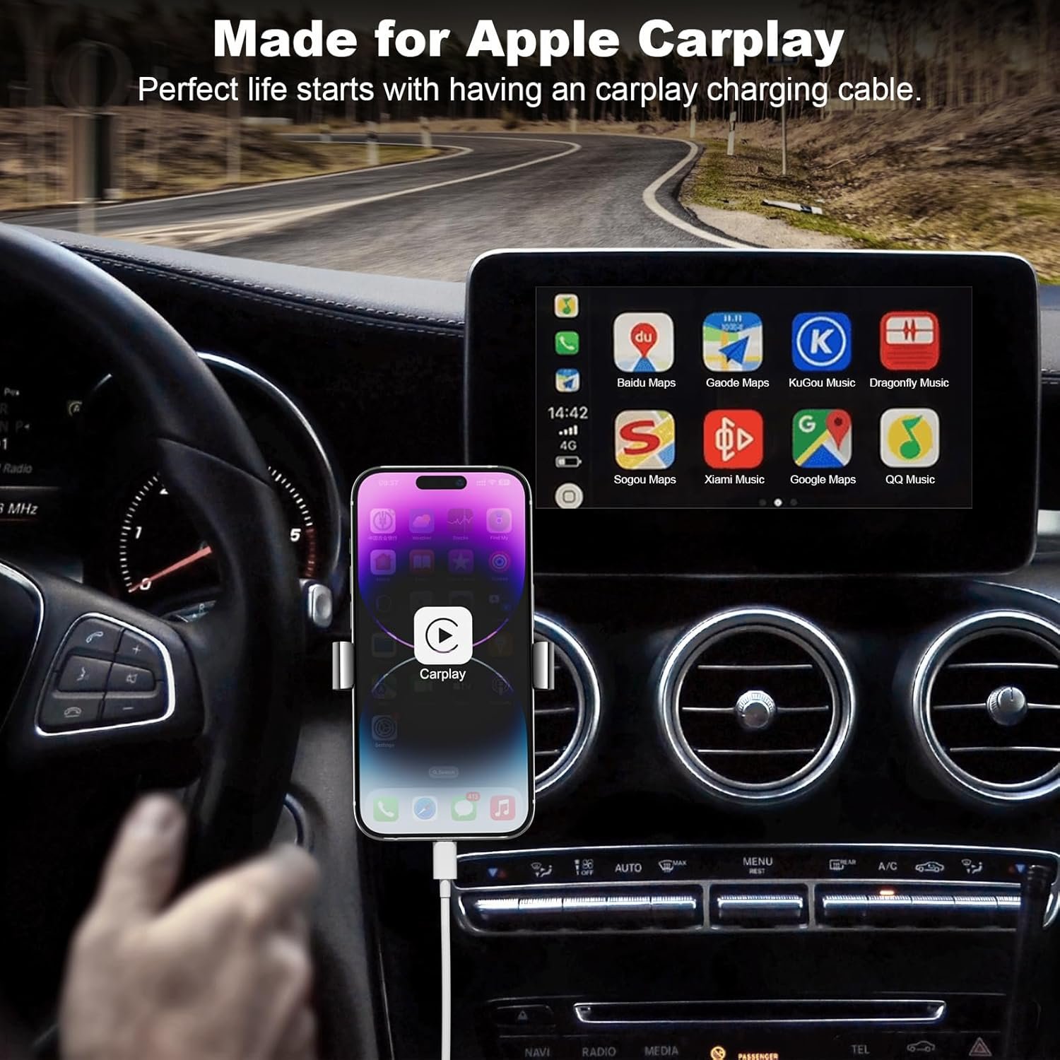 Compatibility: This car carplay cable connects your iPhone 14 13 SE 2nd 12 11 Xs XR 8 7 6 All series,compatible with iPad Pro,iPad Air ,iPad mini ,AirPods