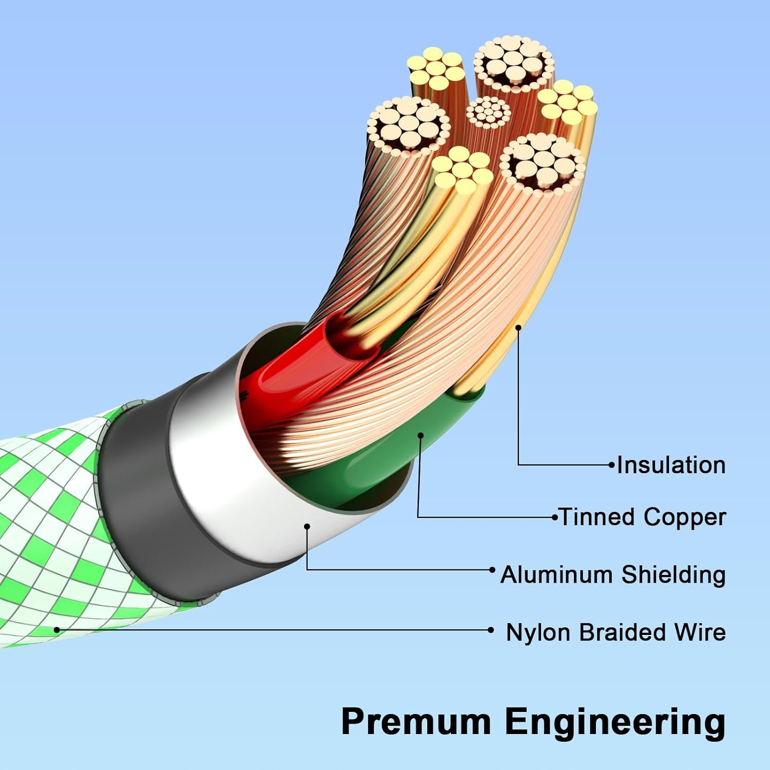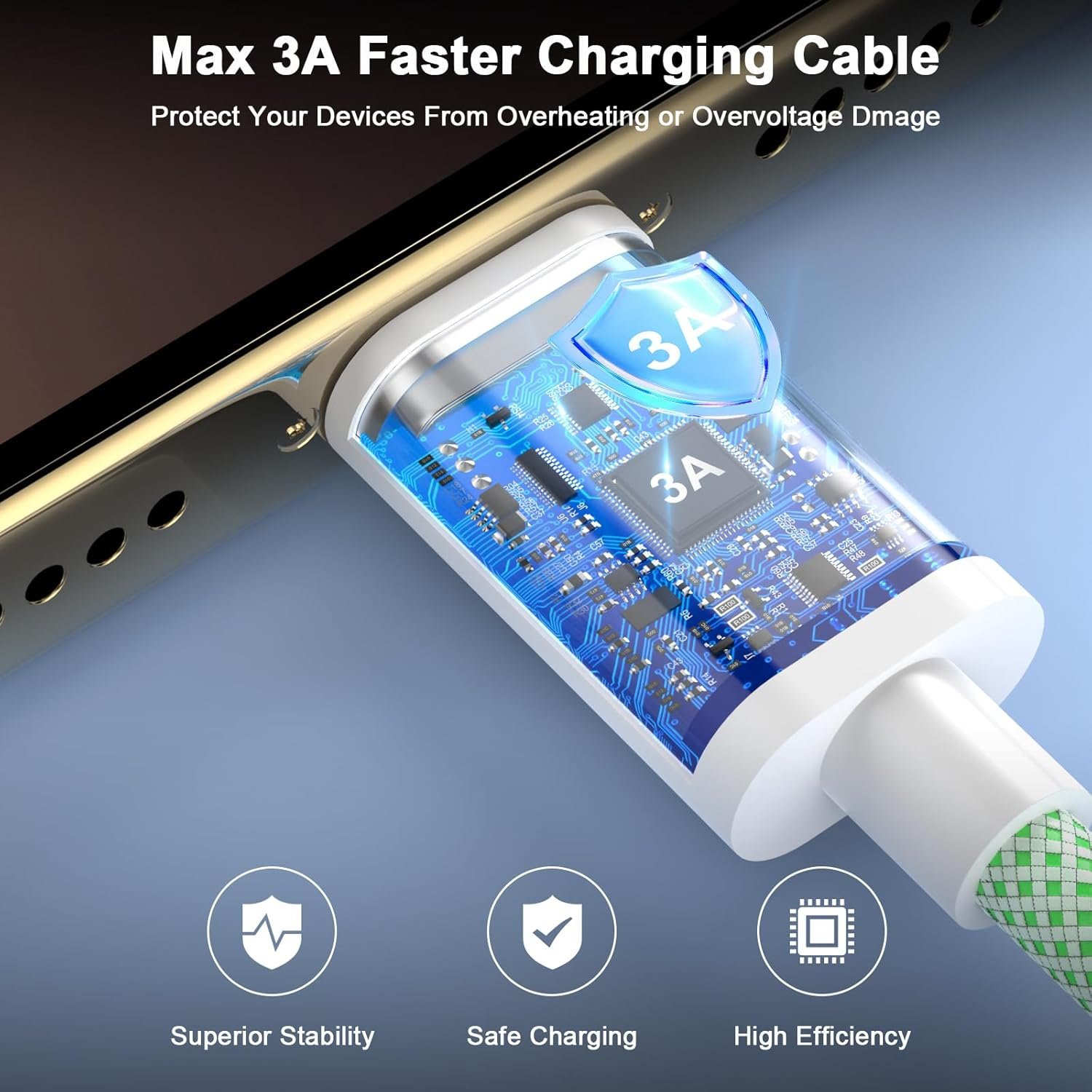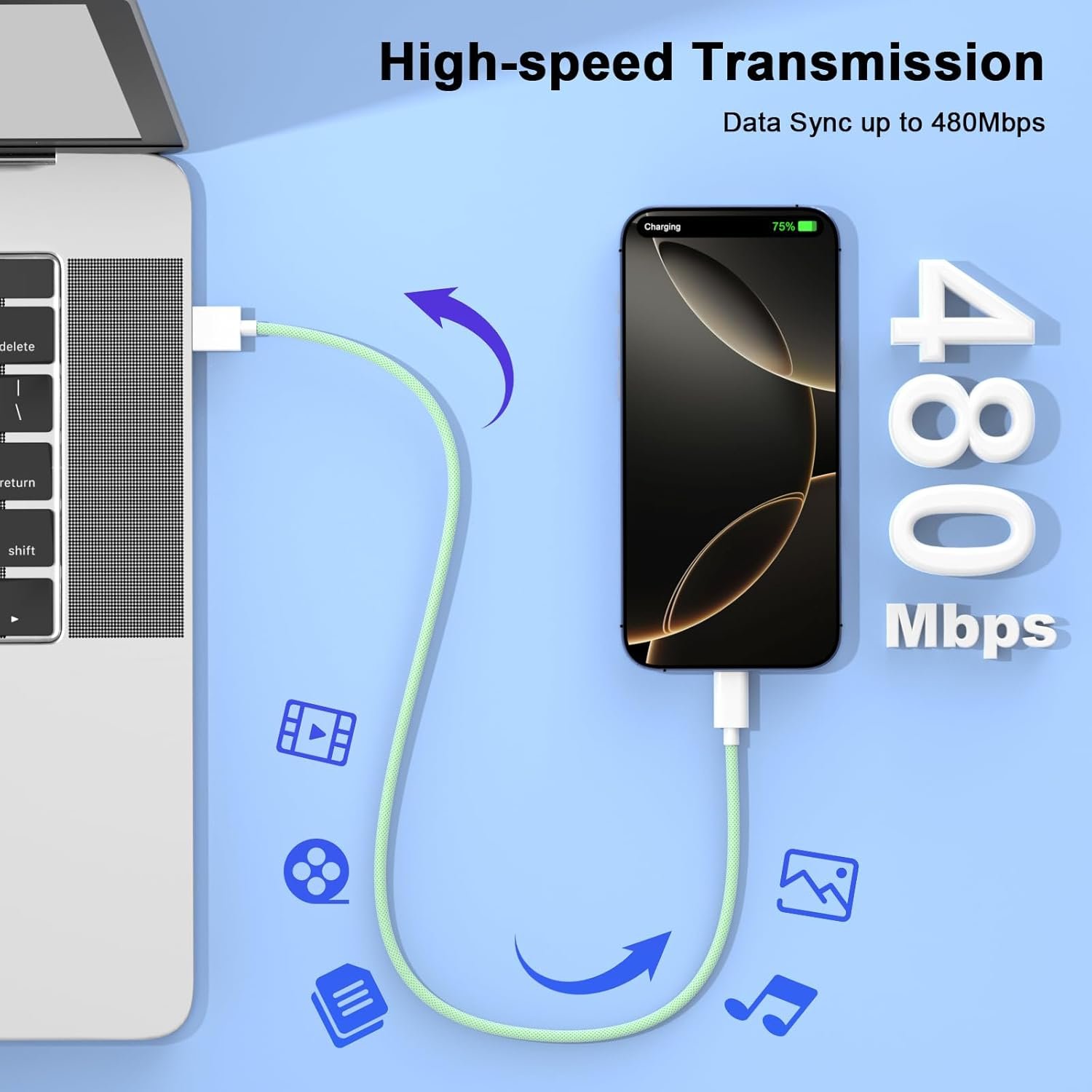 The iPhone 16 charger cable fast charging is made of premium nylon braided which is soft but sturdy. Upgraded usb type c charger cable build to last.
