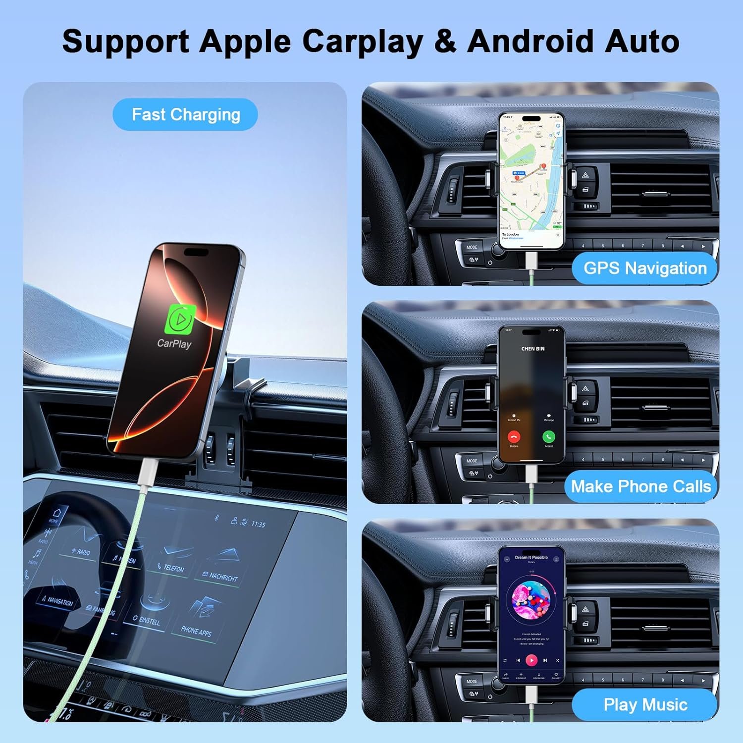【Car Carplay Cable for iPhone 16 15】 The car carplay cable for iPhone 15 supports the PD fast charging protocol. The usb to usb c cable cord enables fast charging, is stable and safe. This iPhone 16 charger cord also compatible with Apple Carplay/Android Auto/Apple TV Remote/Siri Remote/Car Charger/USB A Wall Charger. You can use at car/home/living room/office/hotel.