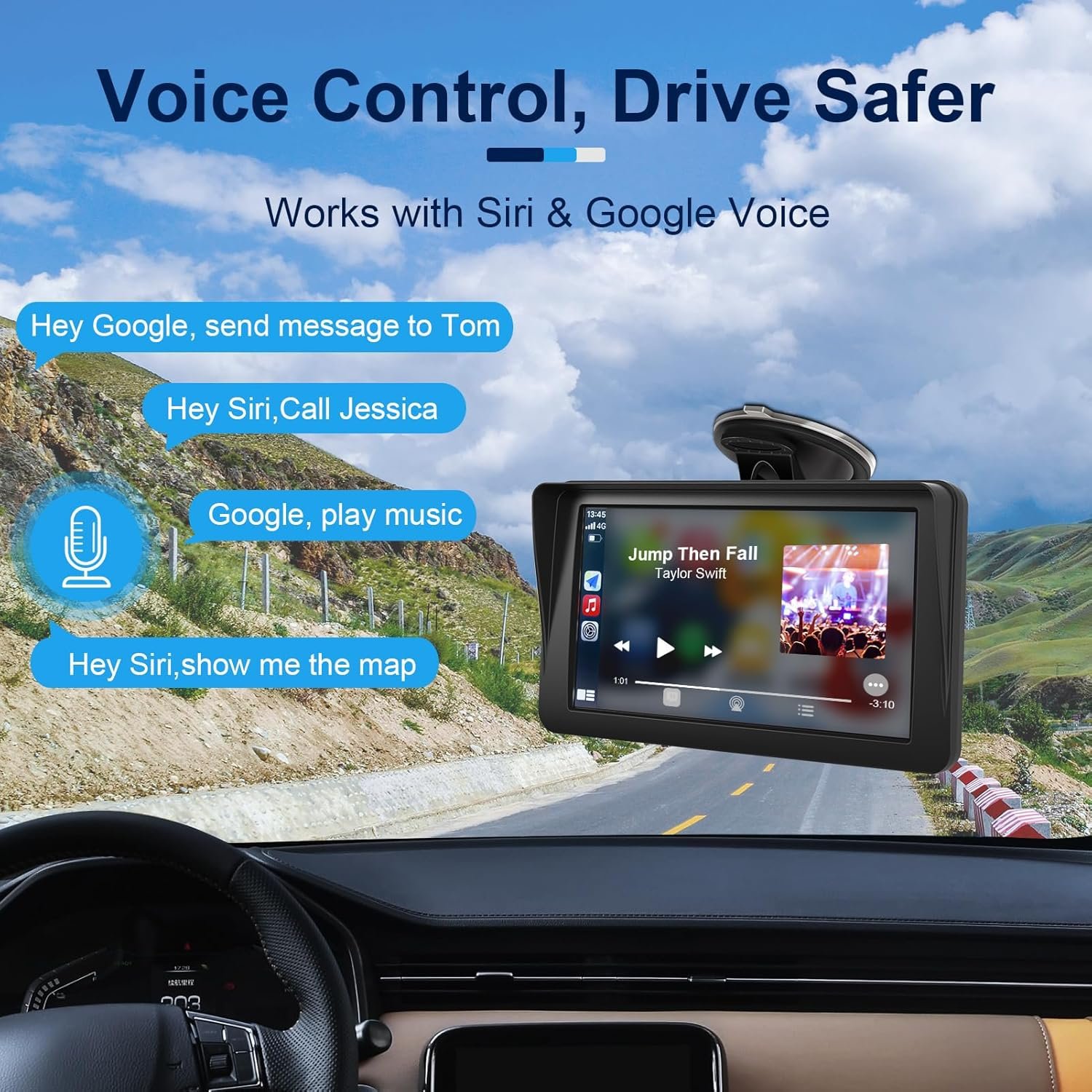 Easily control your wireless carplay car stereo with your voice via your device’s Google or Siri assistant. Need to enable voice assistant in phone settings in advance.