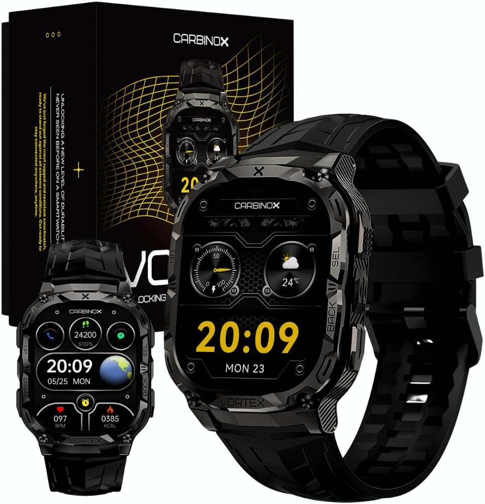 Be the first to review “CARBINOX Vortex Smartwatch (Answer/Make Calls), Military-Grade Rugged Fitness Tracker, IP69K Waterproof, Sport Design for Active Lifestyles”
