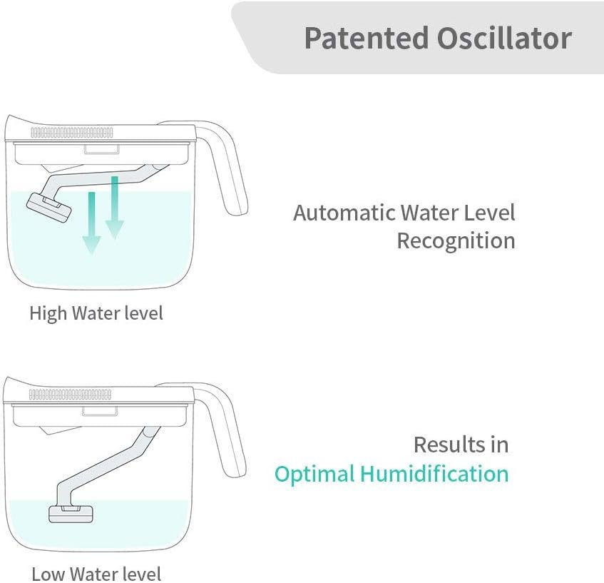 Automatic shut-off: Safely turns off the humidifier when the water level is low. Filterless design: Zero cost of filter replacement