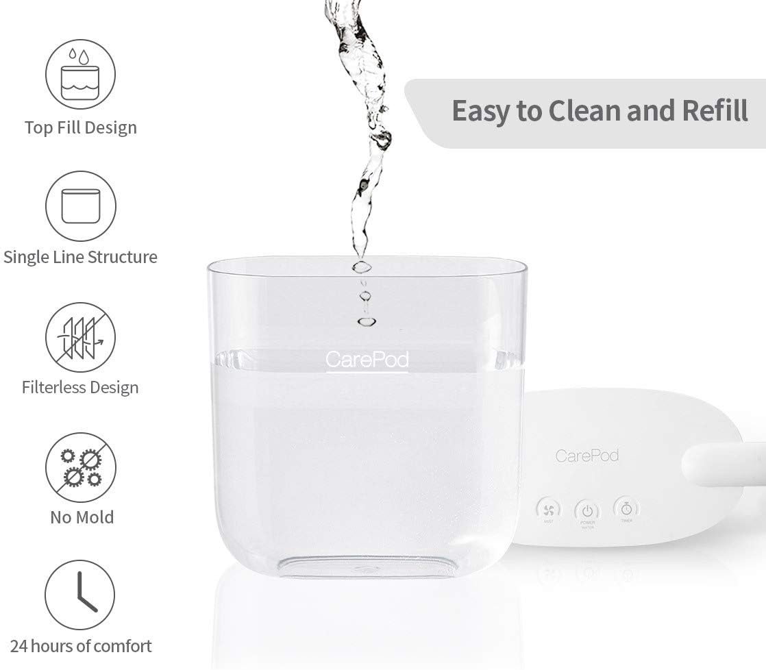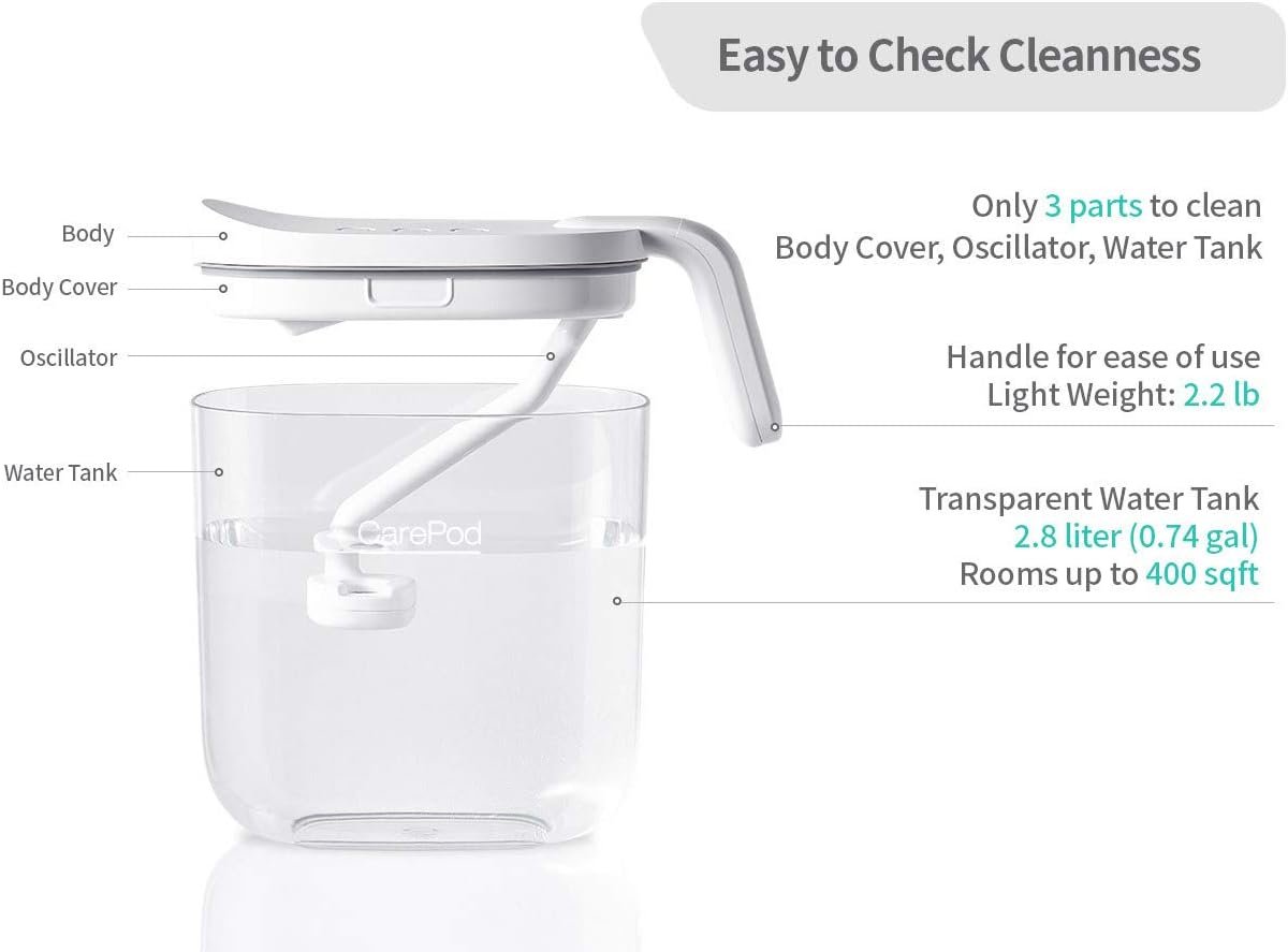 Thanks to its simple structure, the CarePod humidifier can be cleaned quickly with minimal effort. If you have been worrying about mold growth in your humidifier, the CarePod humidifier will put your mind at ease.