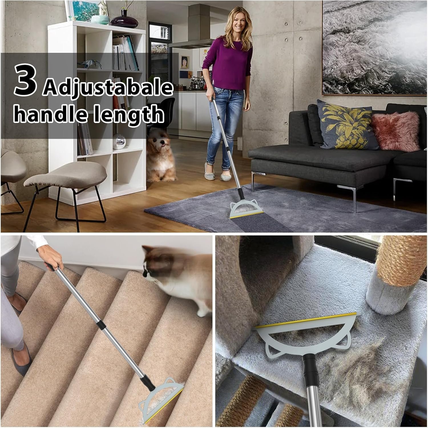 Easy to Assemble And Durability: The pet hair removal broom crafted with a premium aluminum alloy metallic head, our carpet broom is built to last. Assembling our pet hair removal broom is a breeze, simply screw it together in the correct sequence without any extra tools.Glide the carpet brush over your rugs and witness the effortless removal of fur, eliminating stubborn embedded hairs without any hassle.