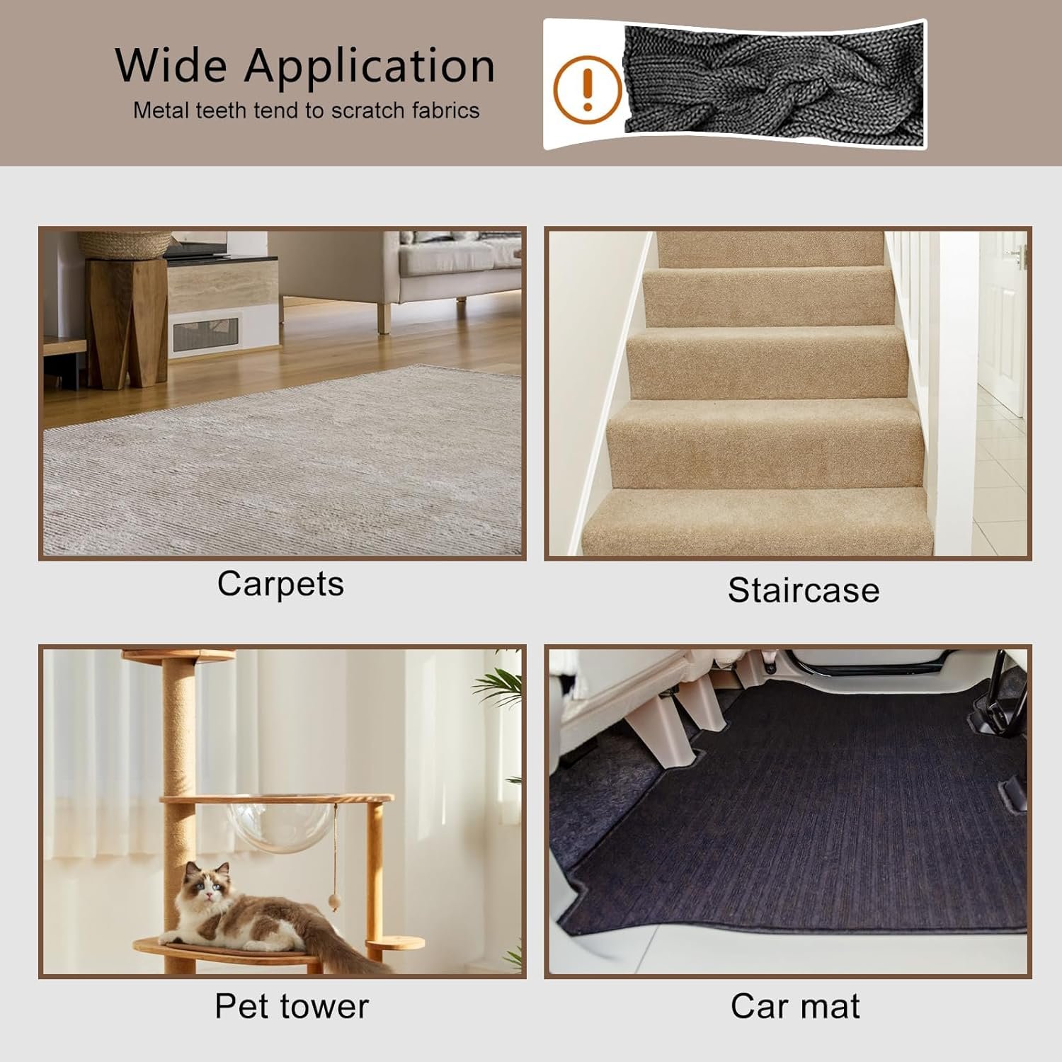 Multiple Use Pet Hair Removal Tool Our reusable carpet scraper lint remover are great tools for carpets, rugs, dog beds, cat towers, stairs. (Buyer Note this carpet rake isn’t suitable for knitted fabrics). Removes all pet hair, human hair, lint, animal fur that even your vacuum or lint roller could never pick up.