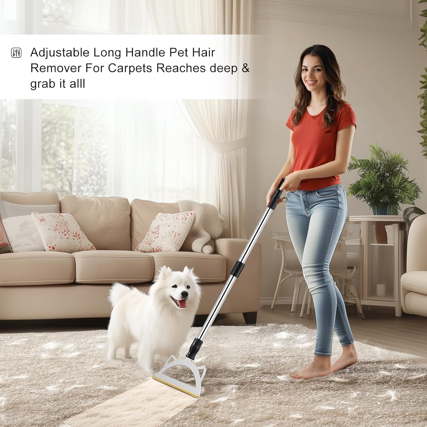 CARPET RAKE FOR PET HAIR REMOVAL, EFFECTIVELY REMOVE DOG/CAT HAIR FROM CARPETS!